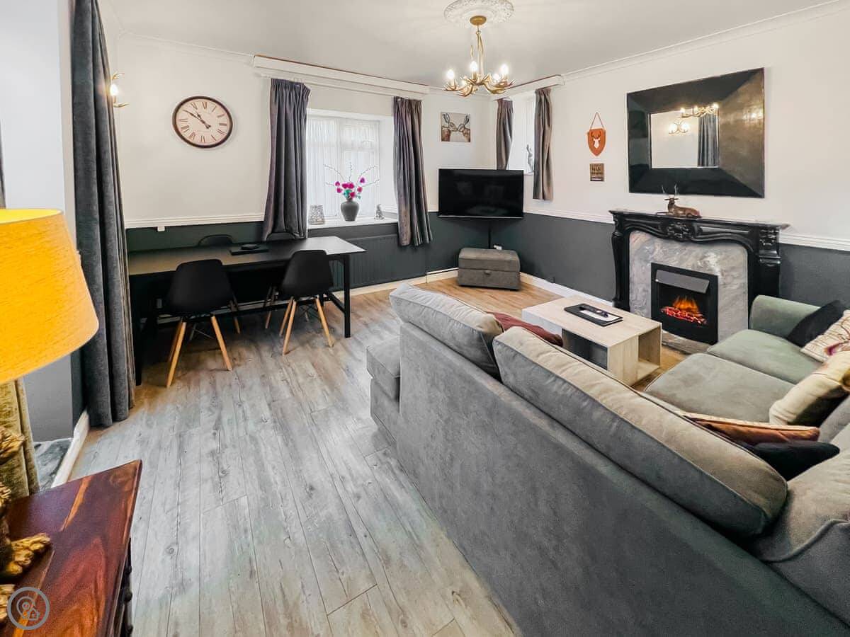 The living room has a smart TV. The main bedroom has one too. WiFi is included. There's a washing machine, a cot, a highchair, and a stairgate if you need them. Bedding is included. You can park right by the cottage.