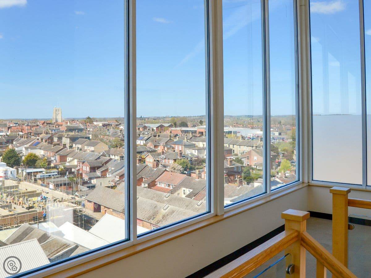Upon exiting the lift, you will be greeted with amazing views overlooking the old market town of Beccles. Once you enter the apartment you will met with bright and contemporary accommodation, and you are sure to be amazed by the spacious wrap-around balcony with fantastic far-reaching views. The spacious master bedroom has fitted wardrobes and double doors open onto the balcony, which wraps around the front and side of the penthouse and enjoys endless views of the old market town and surrounding countryside. Seating table and chairs offer great opportunity for al-fresco dining and a perfect spot to enjoy the sunshine and amazing sunsets. You will be tucked away from the world and certainly not overlooked.