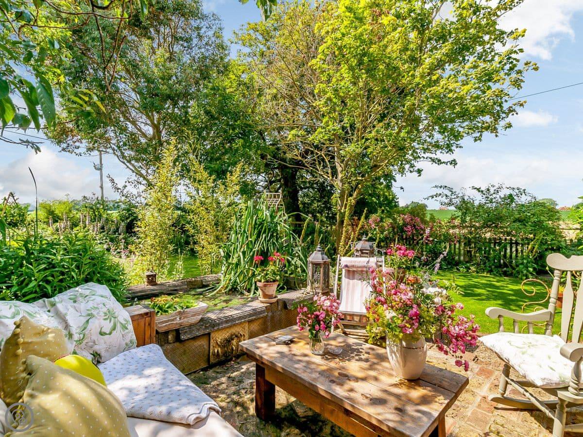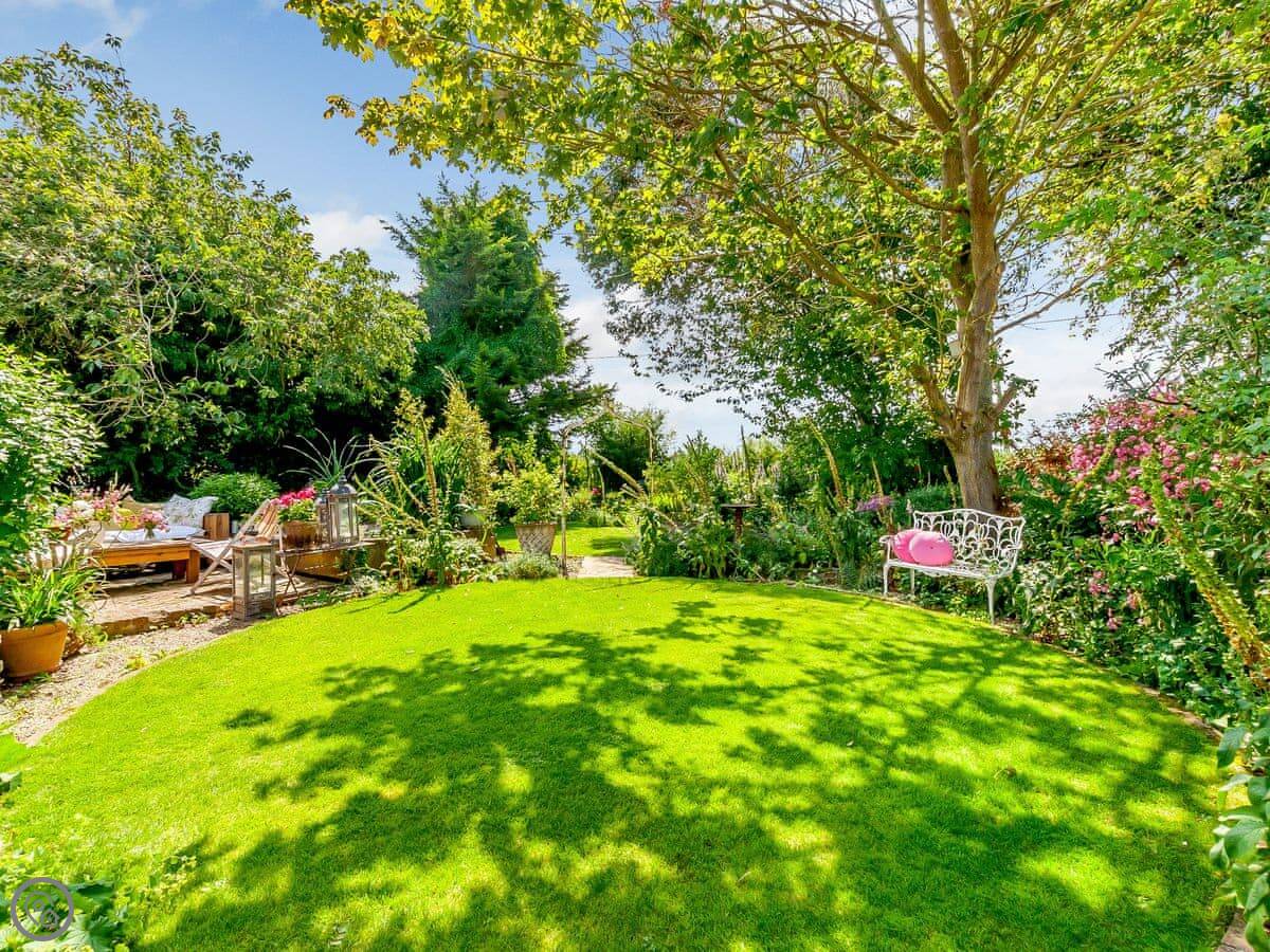 It sleeps six. Three bedrooms, two bathrooms. It has a 5 Star rating, which means it's well-equipped and comfortable. The garden has good outdoor seating for eating or just sitting.