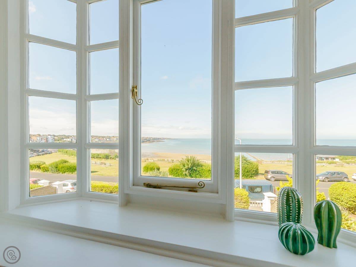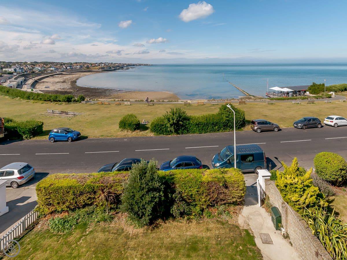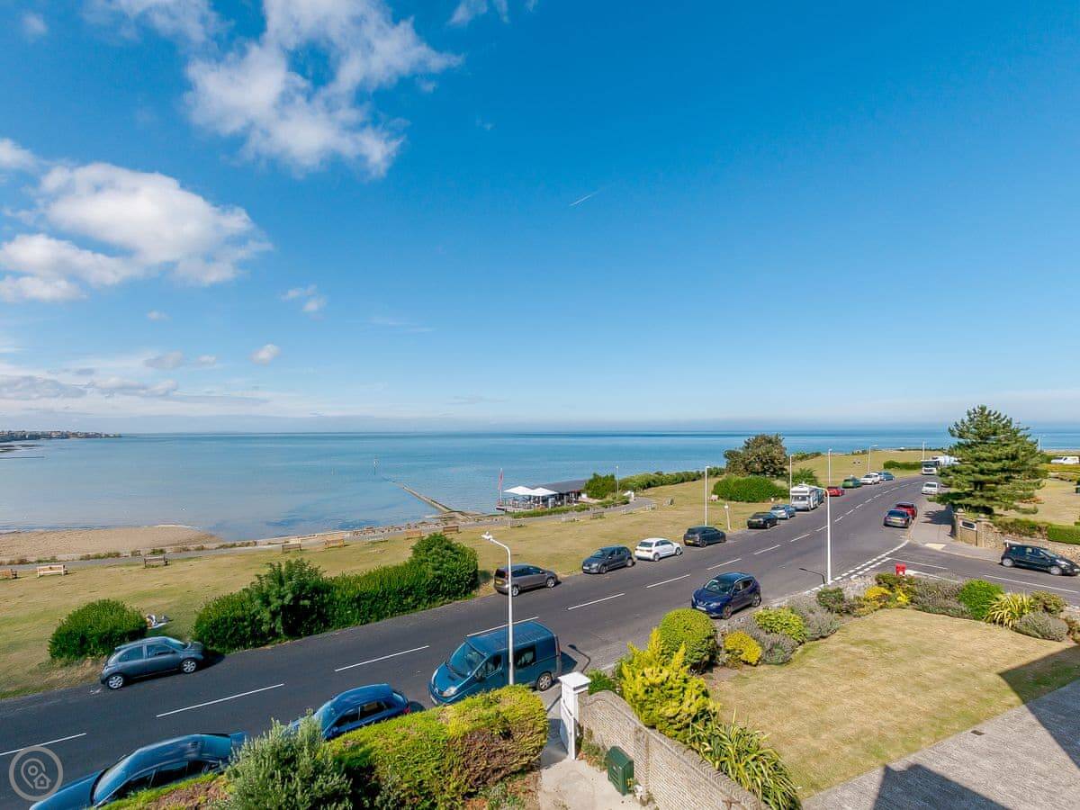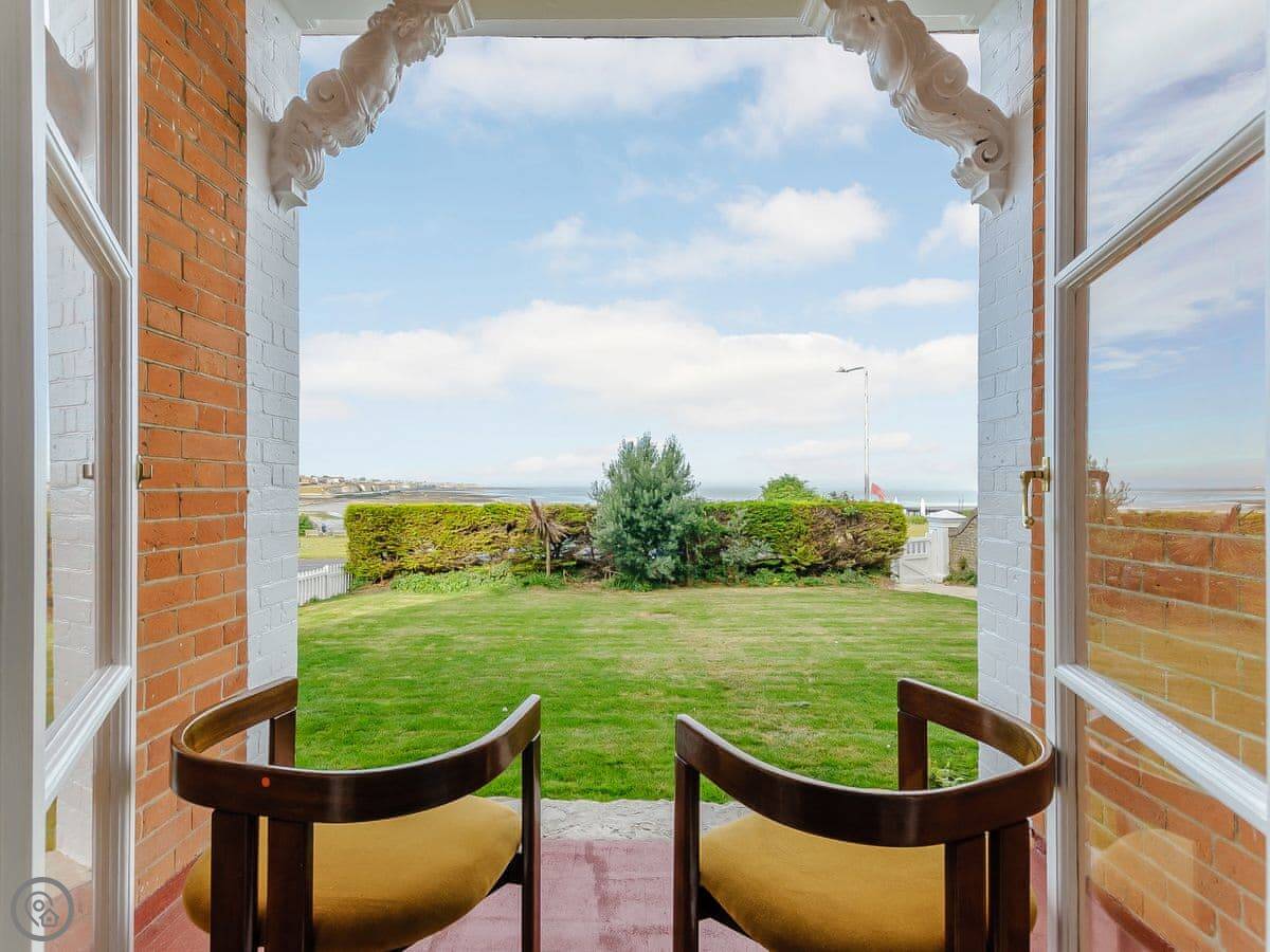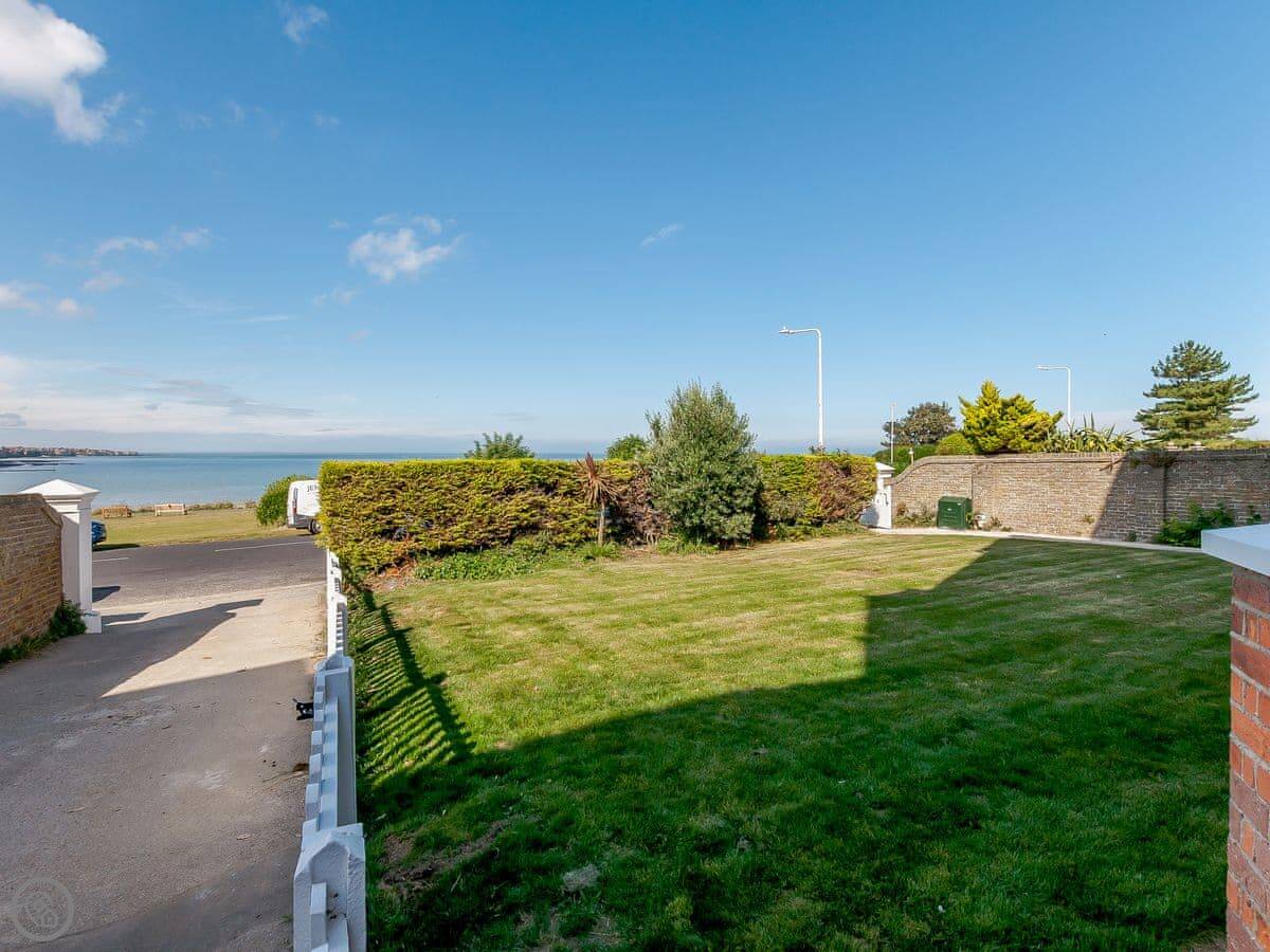 The house faces west over the bay. You get the sunset from the front rooms. The front garden is paved, good for sitting out. There's a bigger garden at the back.