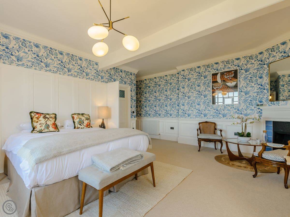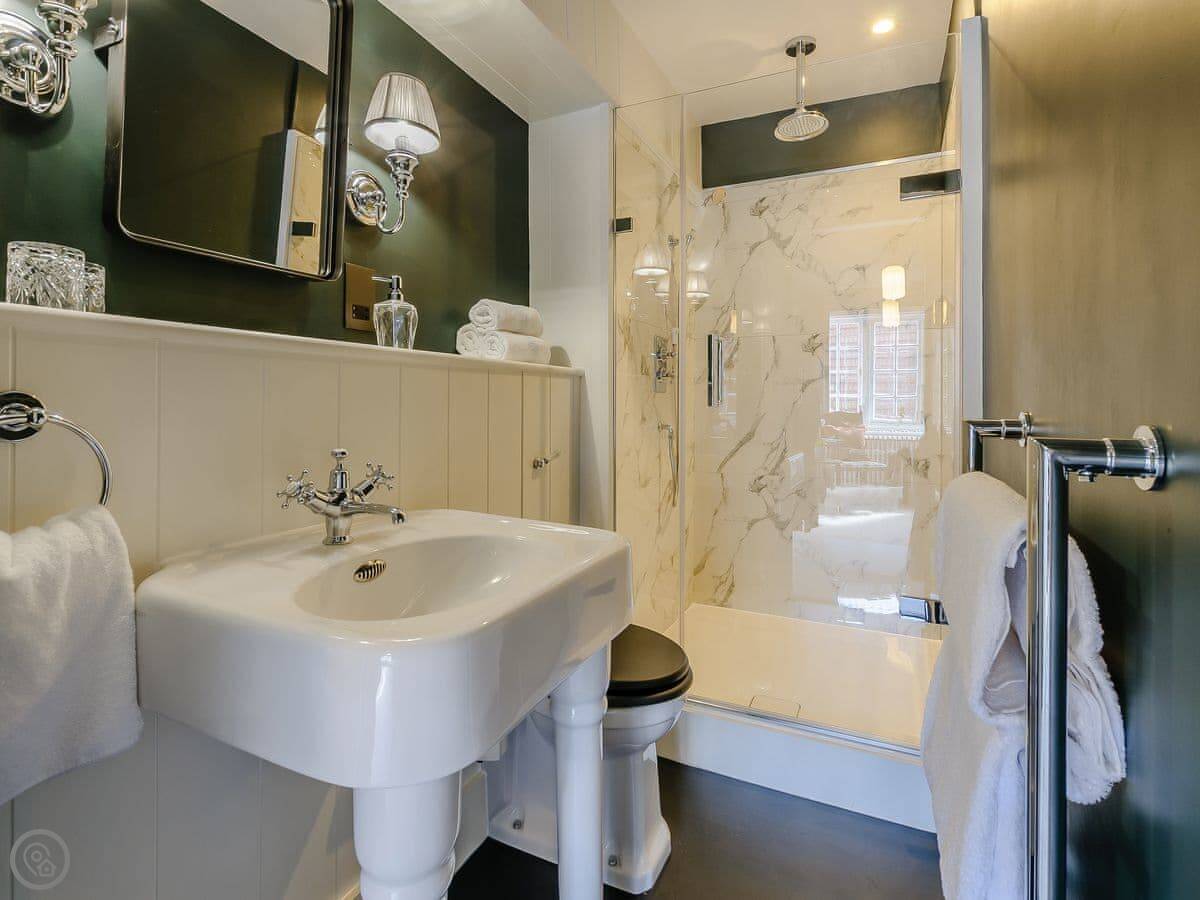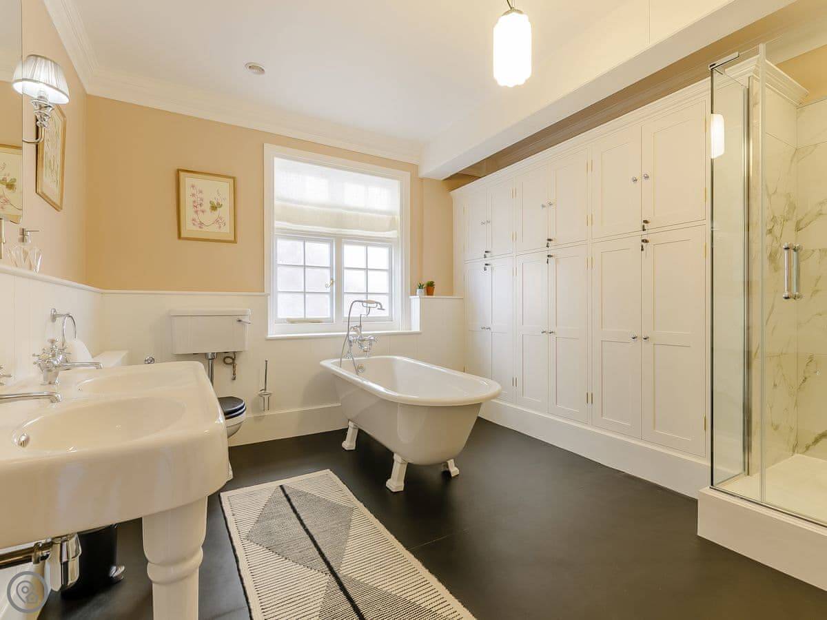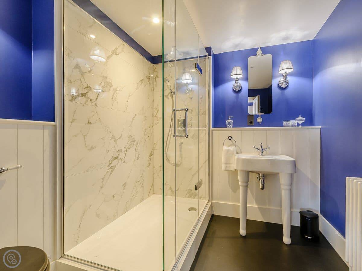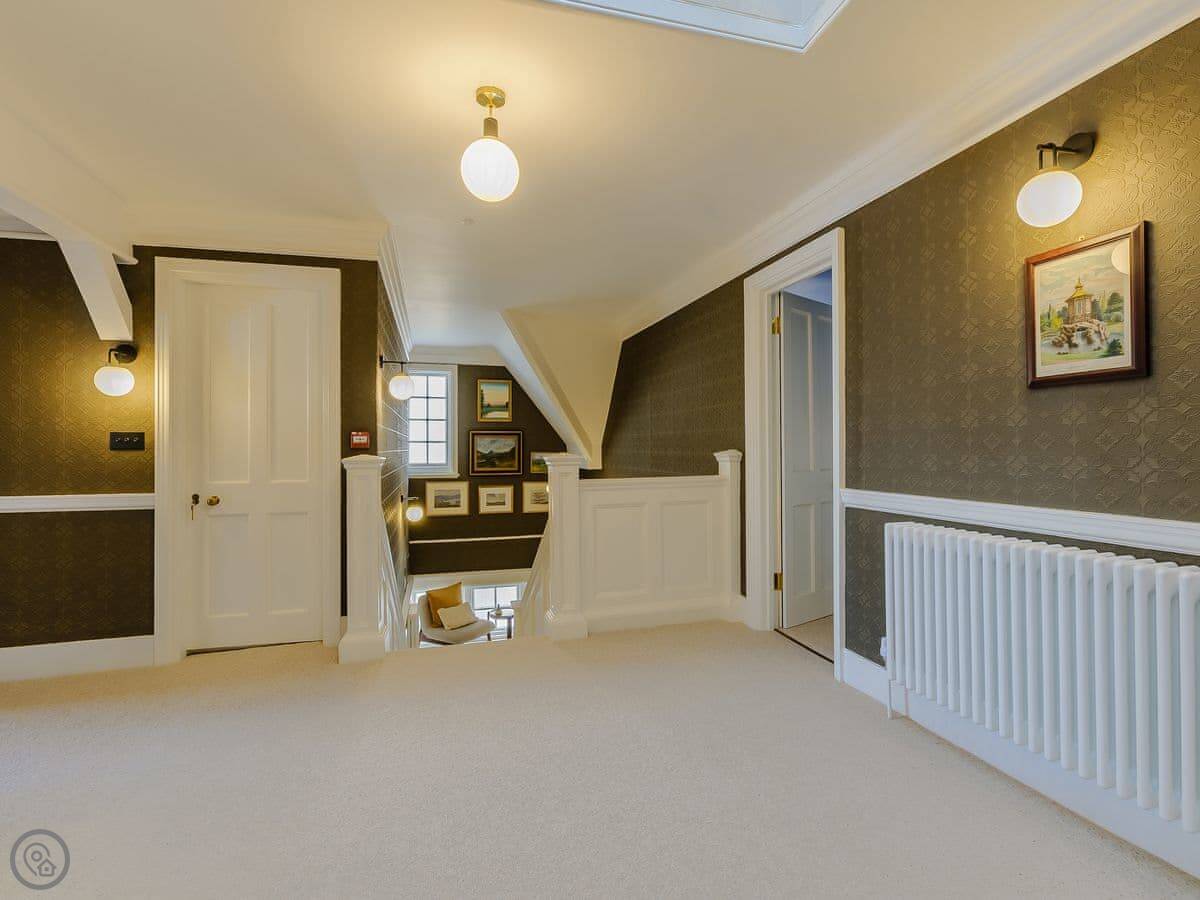 It sleeps eighteen people. Nine bedrooms, each with its own bathroom. It's a 5 Star property, which means it's high-spec and everything has been recently done up.