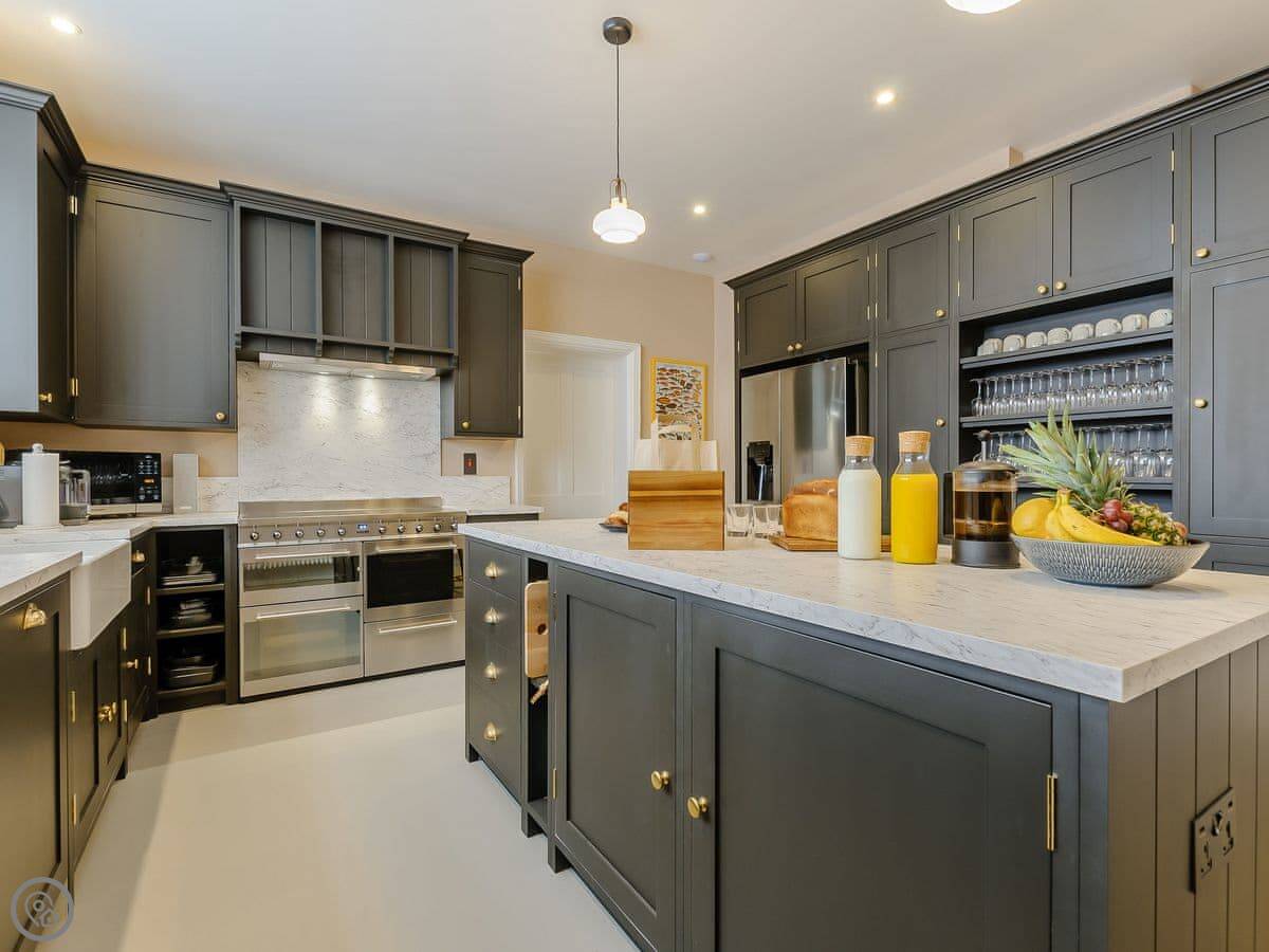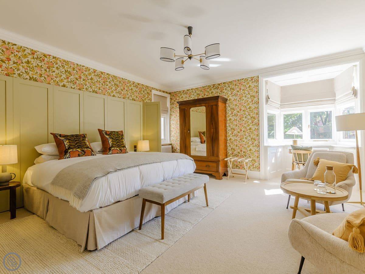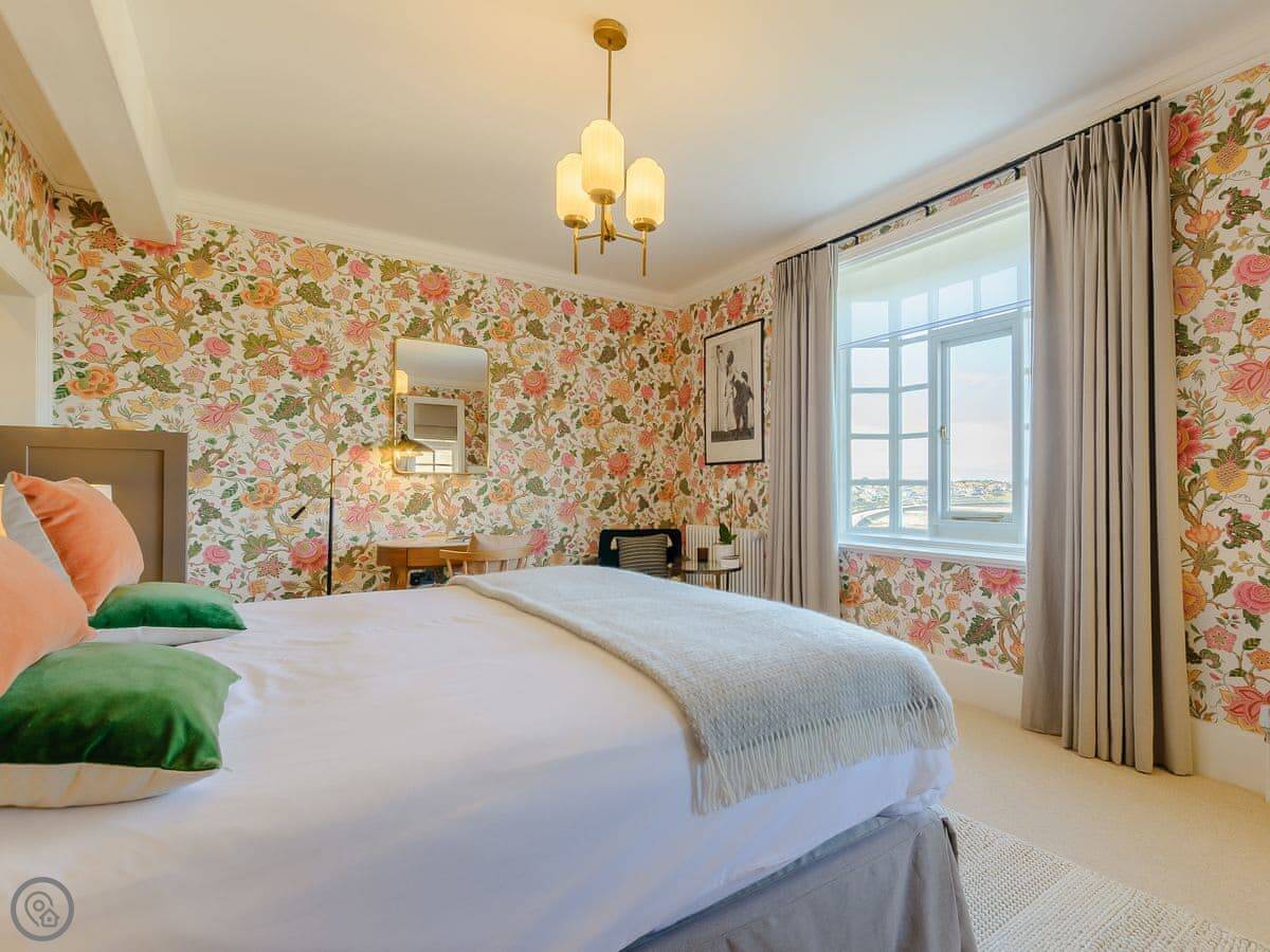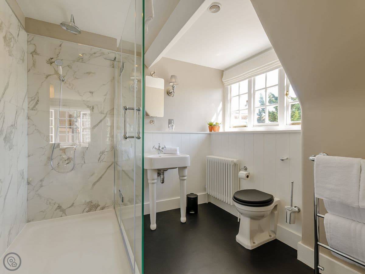 It sleeps eighteen people. Nine bedrooms, each with its own bathroom. It's a 5 Star property, which means it's high-spec and everything has been recently done up.