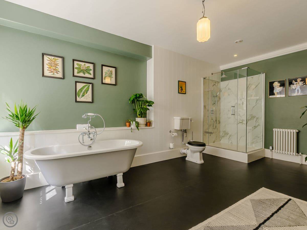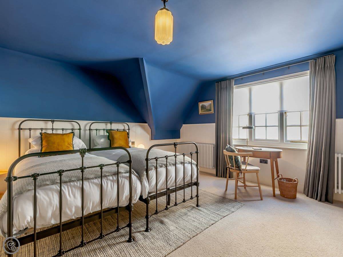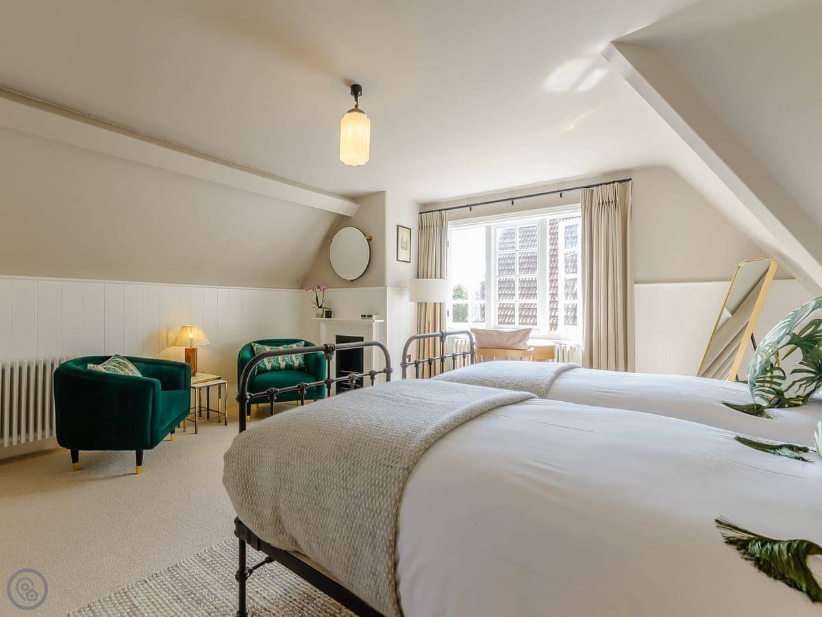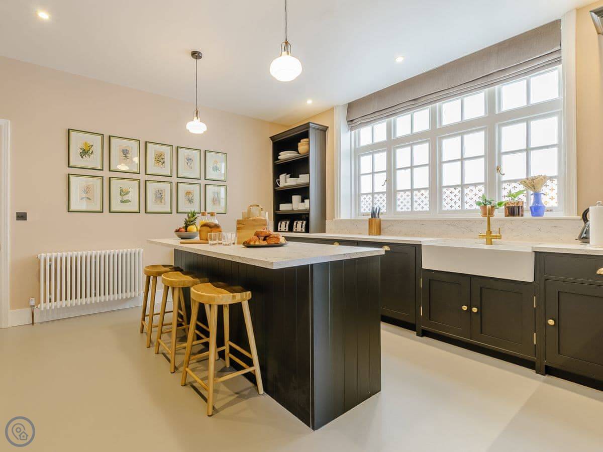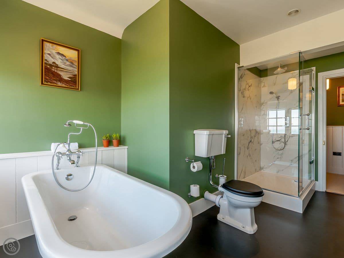 It sleeps eighteen people. Nine bedrooms, each with its own bathroom. It's a 5 Star property, which means it's high-spec and everything has been recently done up.