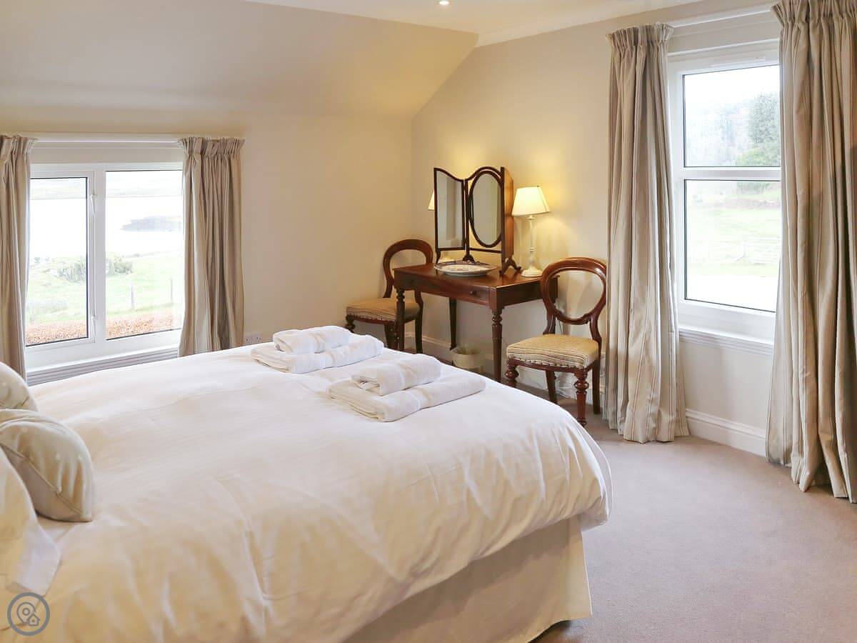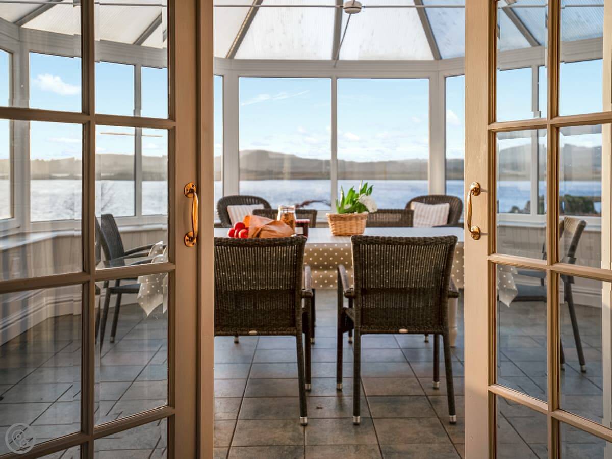 The living room has an open fire. There's a big conservatory that looks out over the garden and the sea. You can see Seil Sound from there. The garden is enclosed.
