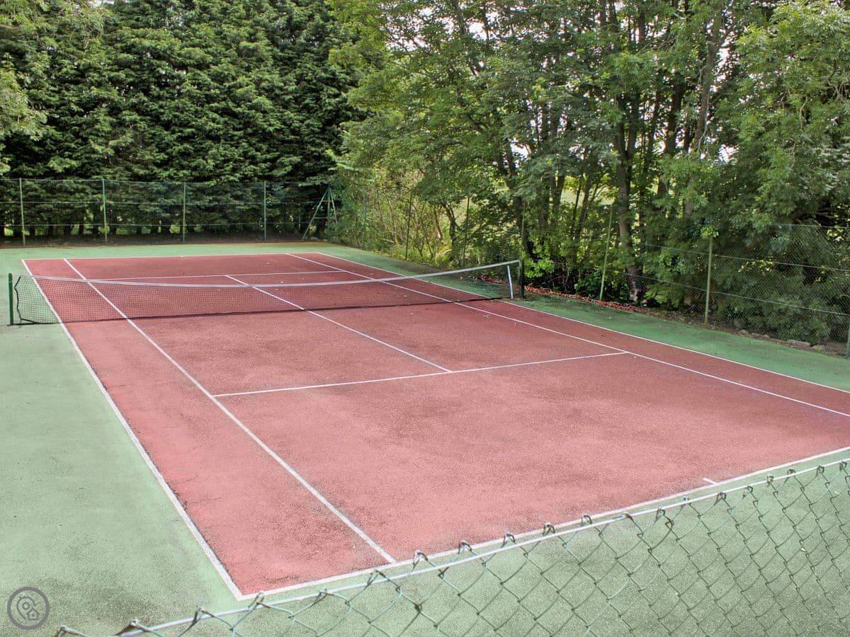 Outside, you have your own patio. You share the bigger grounds with the other cottage. There's a hard tennis court and a games room in an outbuilding you can use.