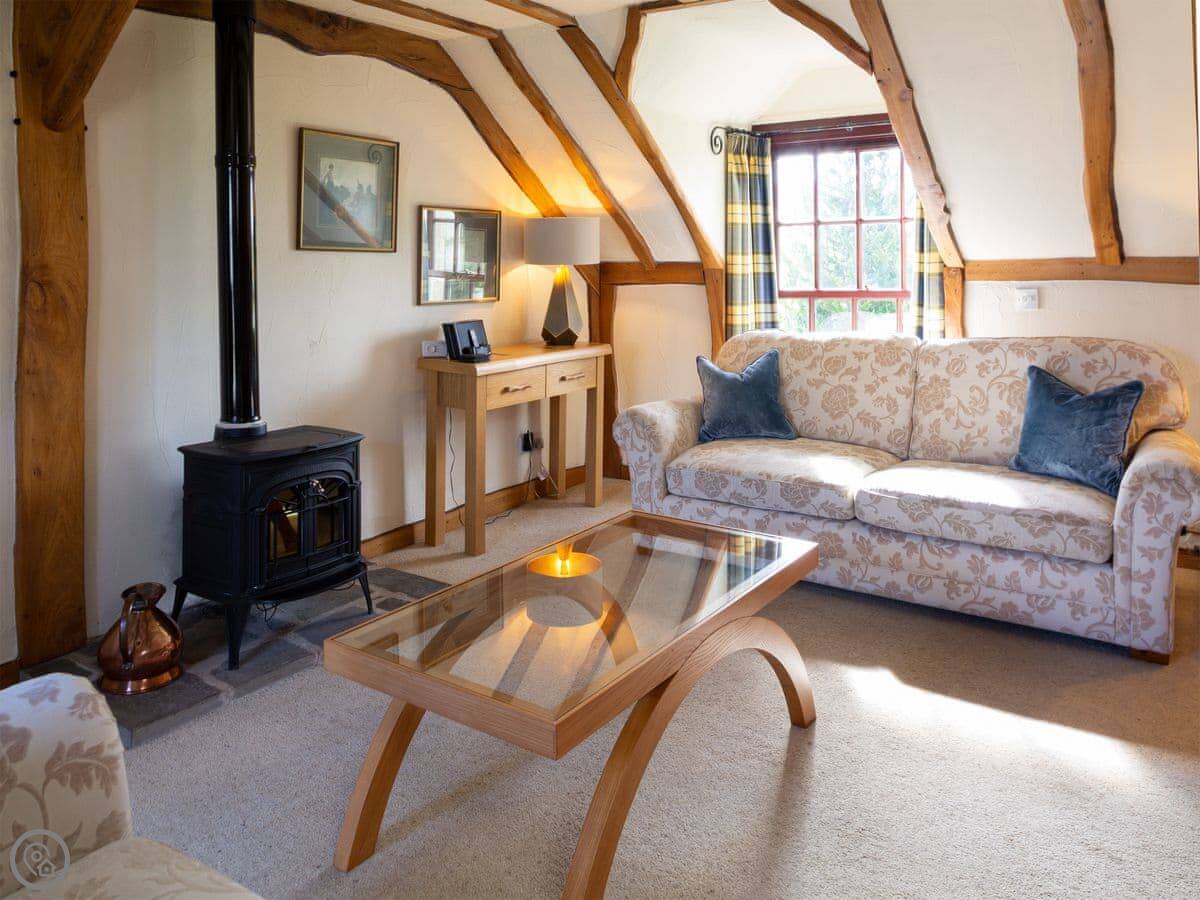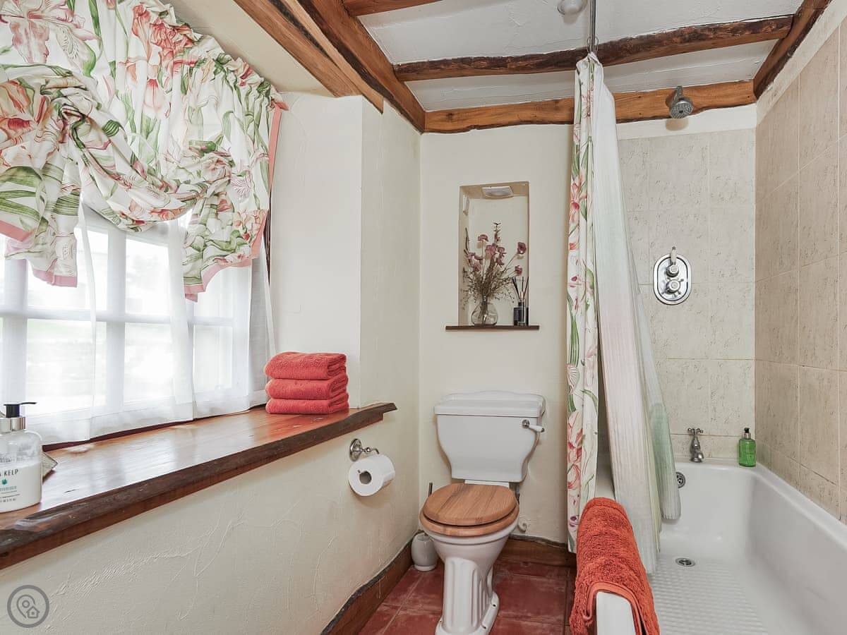 For facilities: you get the Wi-Fi, a washing machine, parking right outside. There's a cot and highchair if you need them. You also share access to a big bit of woodland, a hard tennis court, and a games room with the other cottage. No pets, sorry.