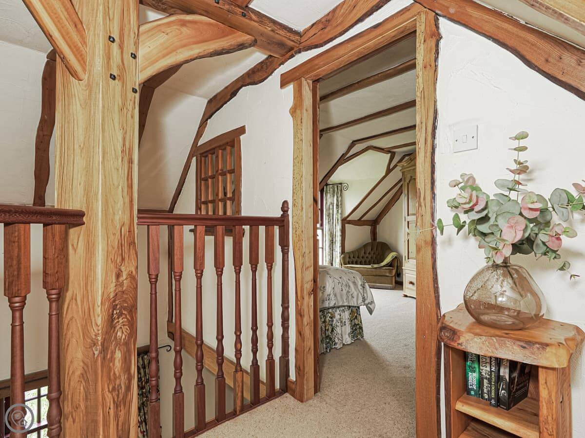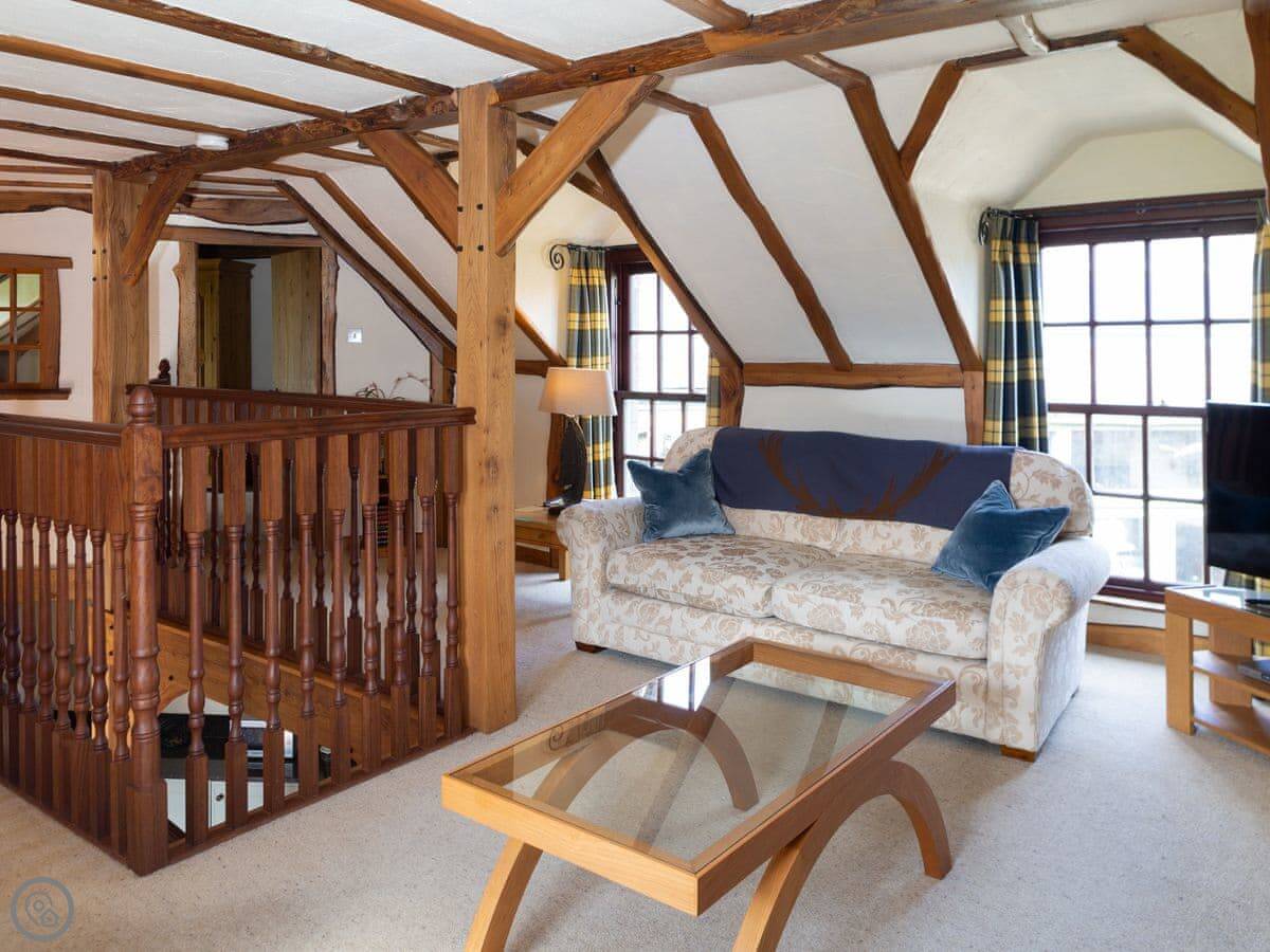 It sleeps four. Two bedrooms upstairs, one bathroom downstairs. It's a 4 Star place, so it's comfortable and well kept. The living area is upstairs. That's what they call 'upside-down' living. It means the views from the main room are better. The stairs inside are a standard mill conversion staircase, so they're a bit tighter and steeper than a modern house.