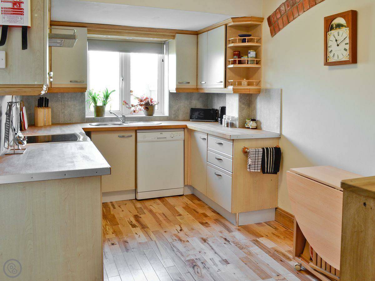 The facilities are all there: WiFi, TV, washing machine, dishwasher. Bedding and towels are included. There’s a cot and highchair if you need them. You can bring up to two dogs. Parking is on site.