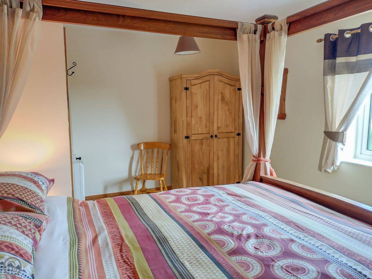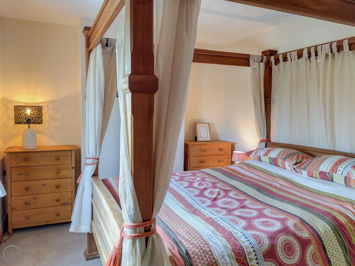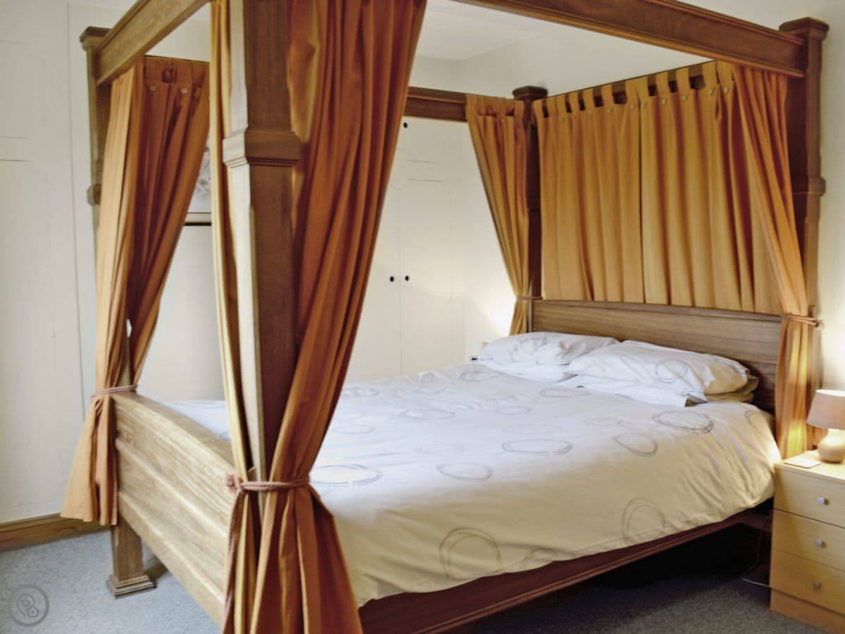 It sleeps six. Three bedrooms and one bathroom. There’s a hand made four poster bed in the main bedroom, which is nice. One twin bedroom is on the first floor, the other is up another flight of stairs on the second floor. The rating is 4 Star, so it’s comfortable and well equipped.