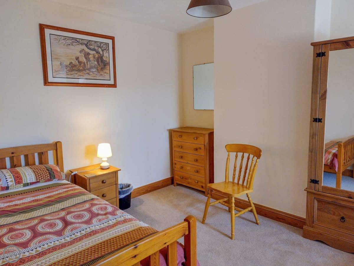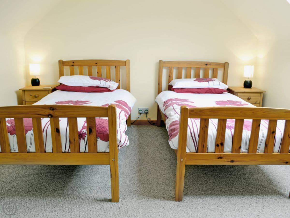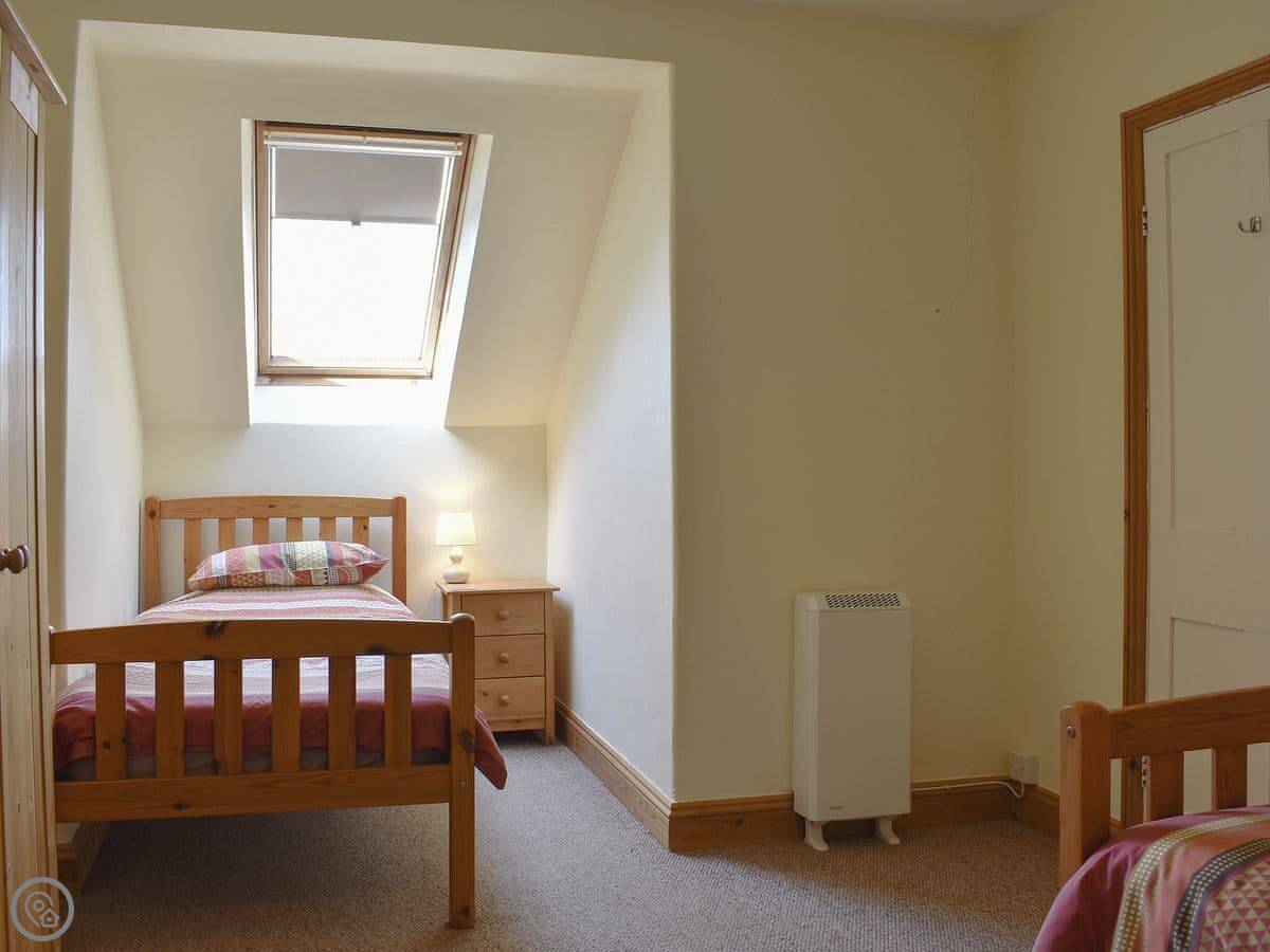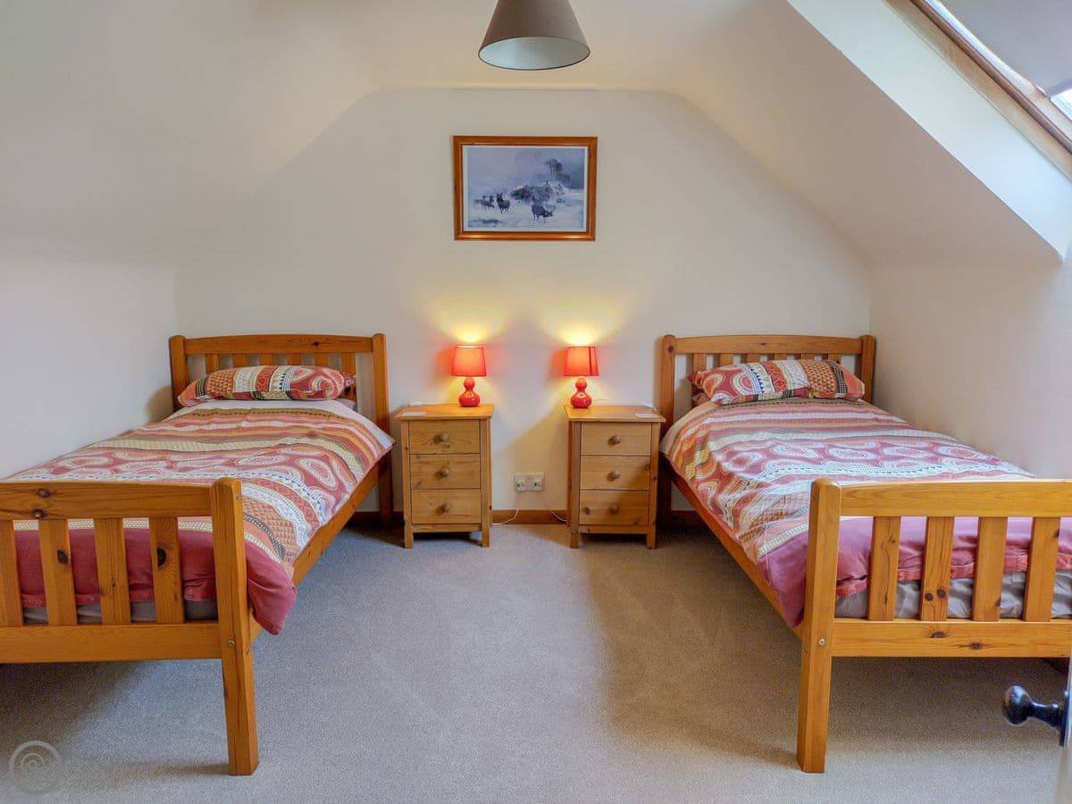 It sleeps six. Three bedrooms and one bathroom. There’s a hand made four poster bed in the main bedroom, which is nice. One twin bedroom is on the first floor, the other is up another flight of stairs on the second floor. The rating is 4 Star, so it’s comfortable and well equipped.
