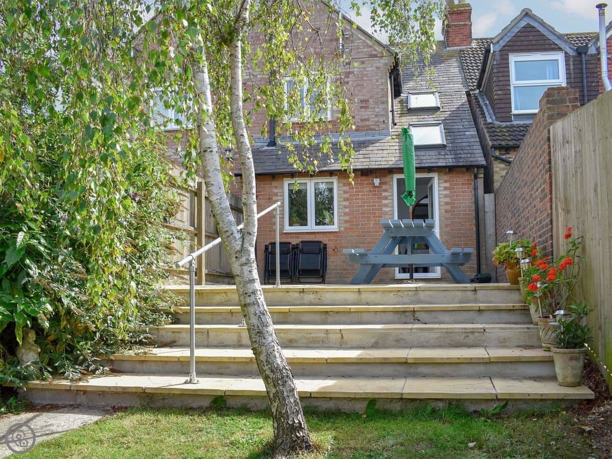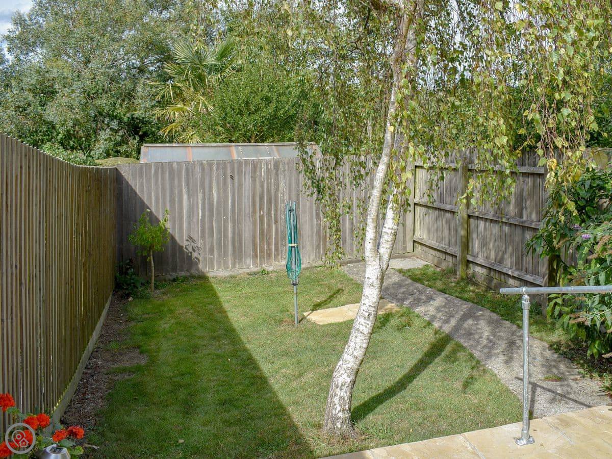 Downstairs there’s a living room with an open fire. It’s good for cooler evenings. Outside there’s an enclosed garden and a patio, plus a BBQ.