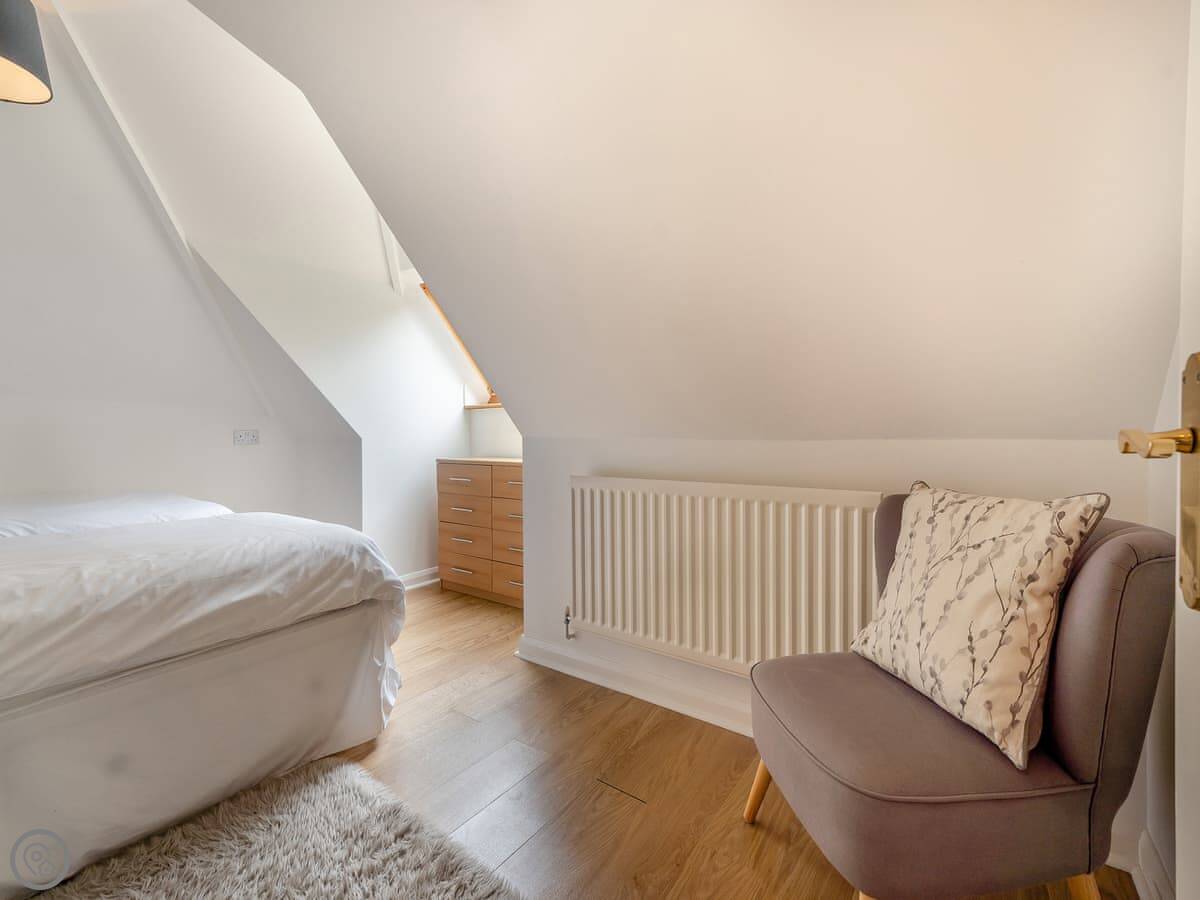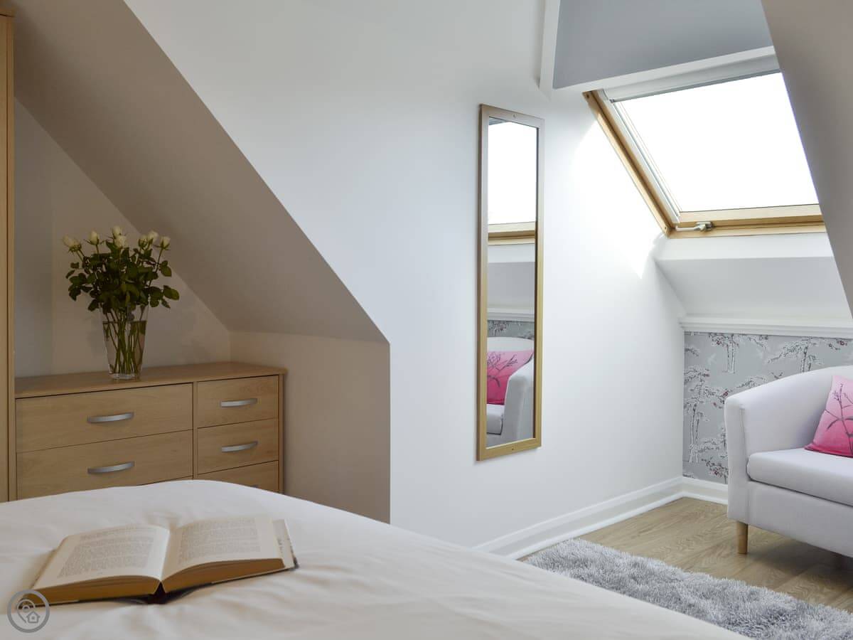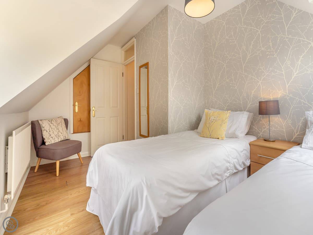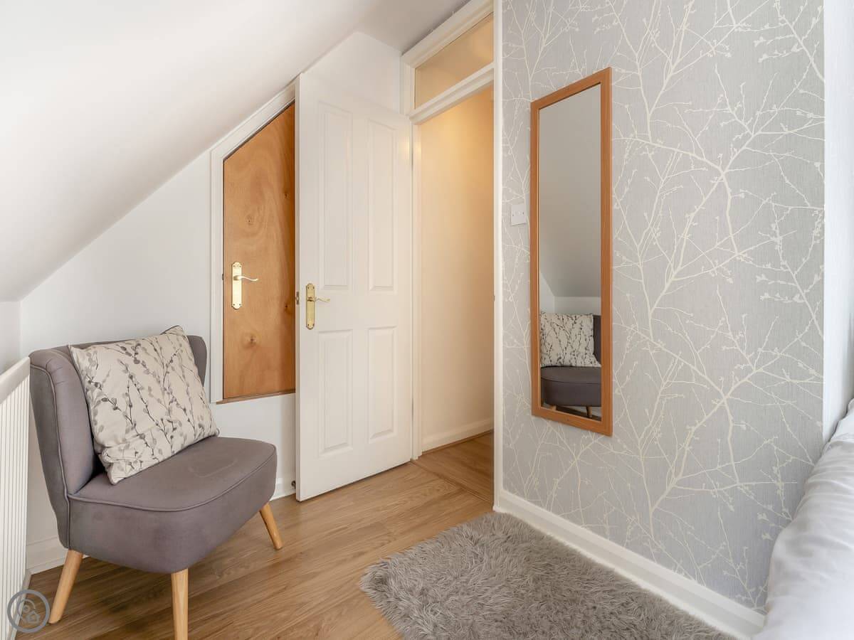 It's a four star place, sleeps four. Two bedrooms, one bathroom. The stairs inside are a bit of a feature. They're open-tread and spiral, so quite steep and narrow in parts. Just something to be aware of.