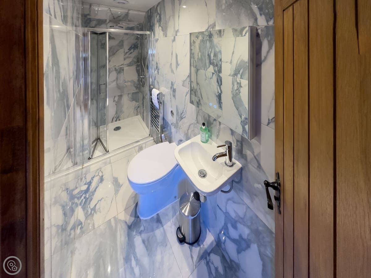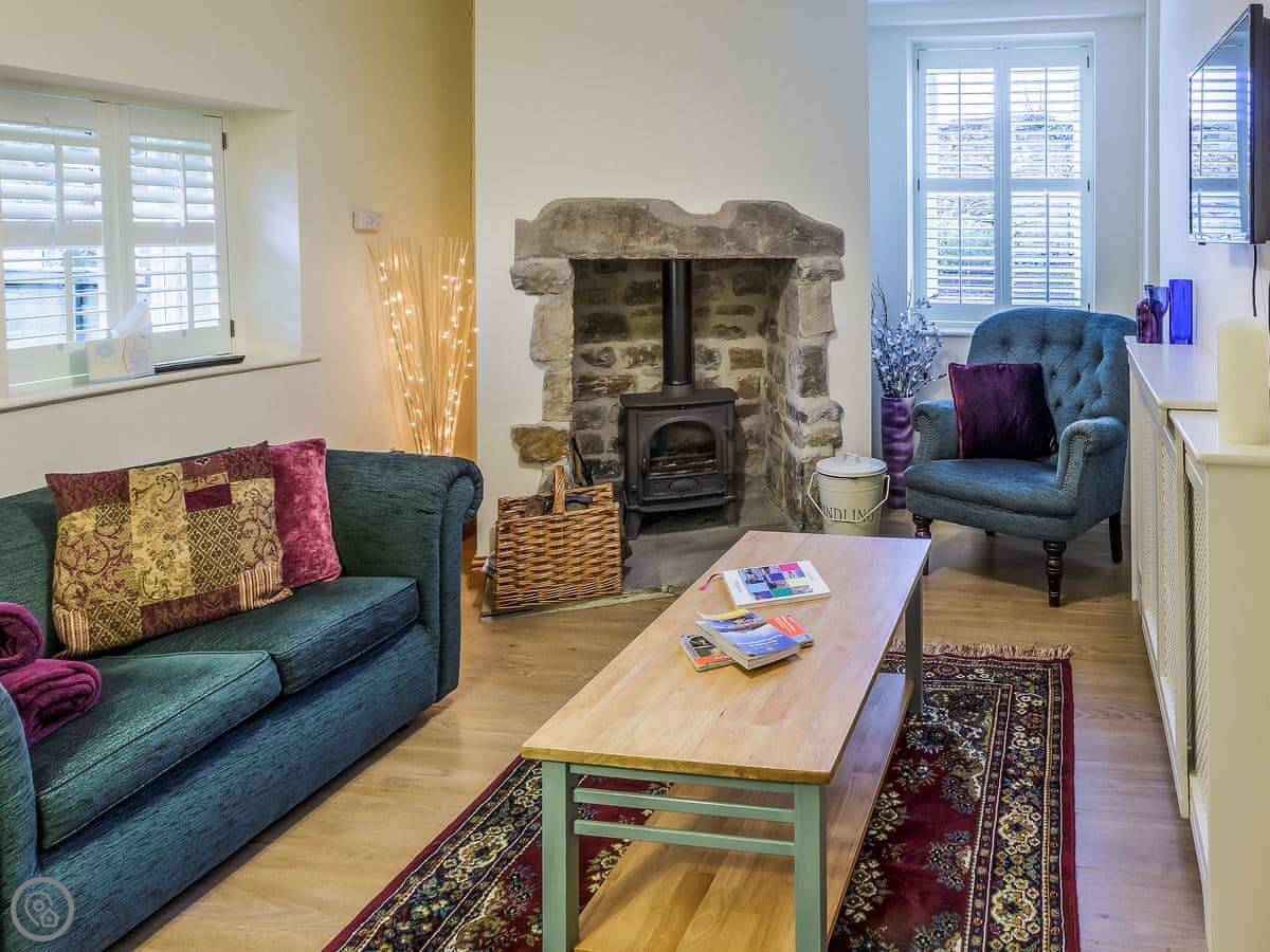 It sleeps four. Two bedrooms, and two bathrooms which is handy. It's got a 4 Star rating. It's comfortable, with a woodburning stove for winter. There's another cottage on the same site, but you've got your own space.