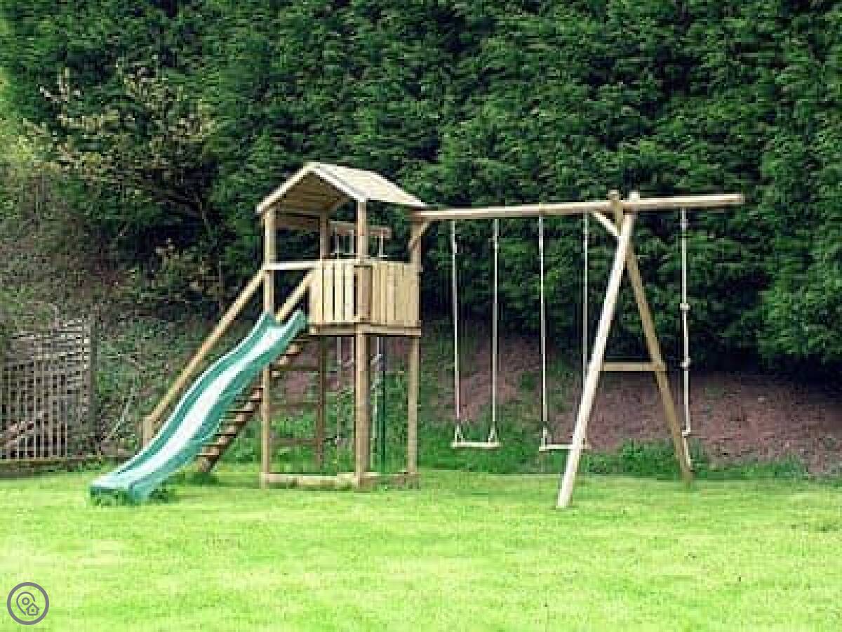Outside, you've got your own patio with a table and a BBQ. There's a shared bit of grass for kids to run around on, with a swing and a slide. You can park right outside the door.