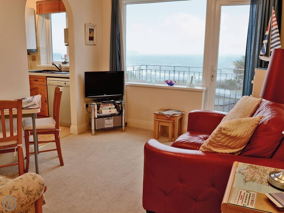 Tarifa 7 is a first floor flat in Bigbury on Sea. It's compact, it's for two people, and it looks out over the beach and Burgh Island. The view is the main thing.
