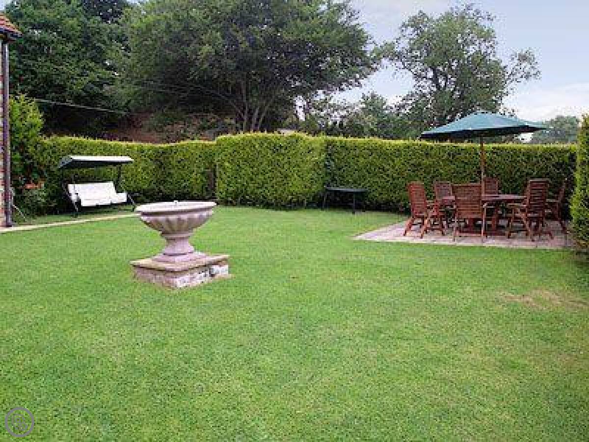 You're welcome to walk around the farm, about 150 acres of fields and a bit of woodland. There's an enclosed patio with a table and a small pond. There's a children's play area too, with a swing and a slide.