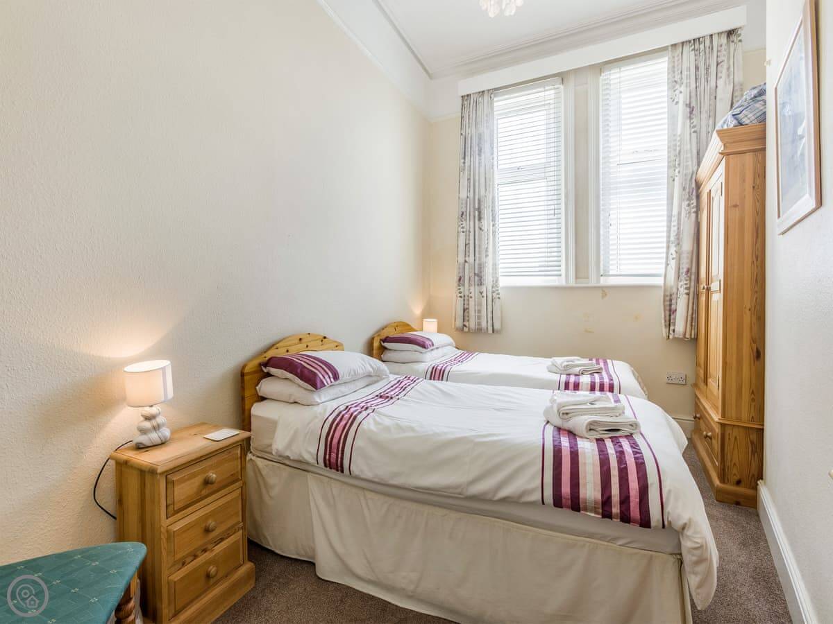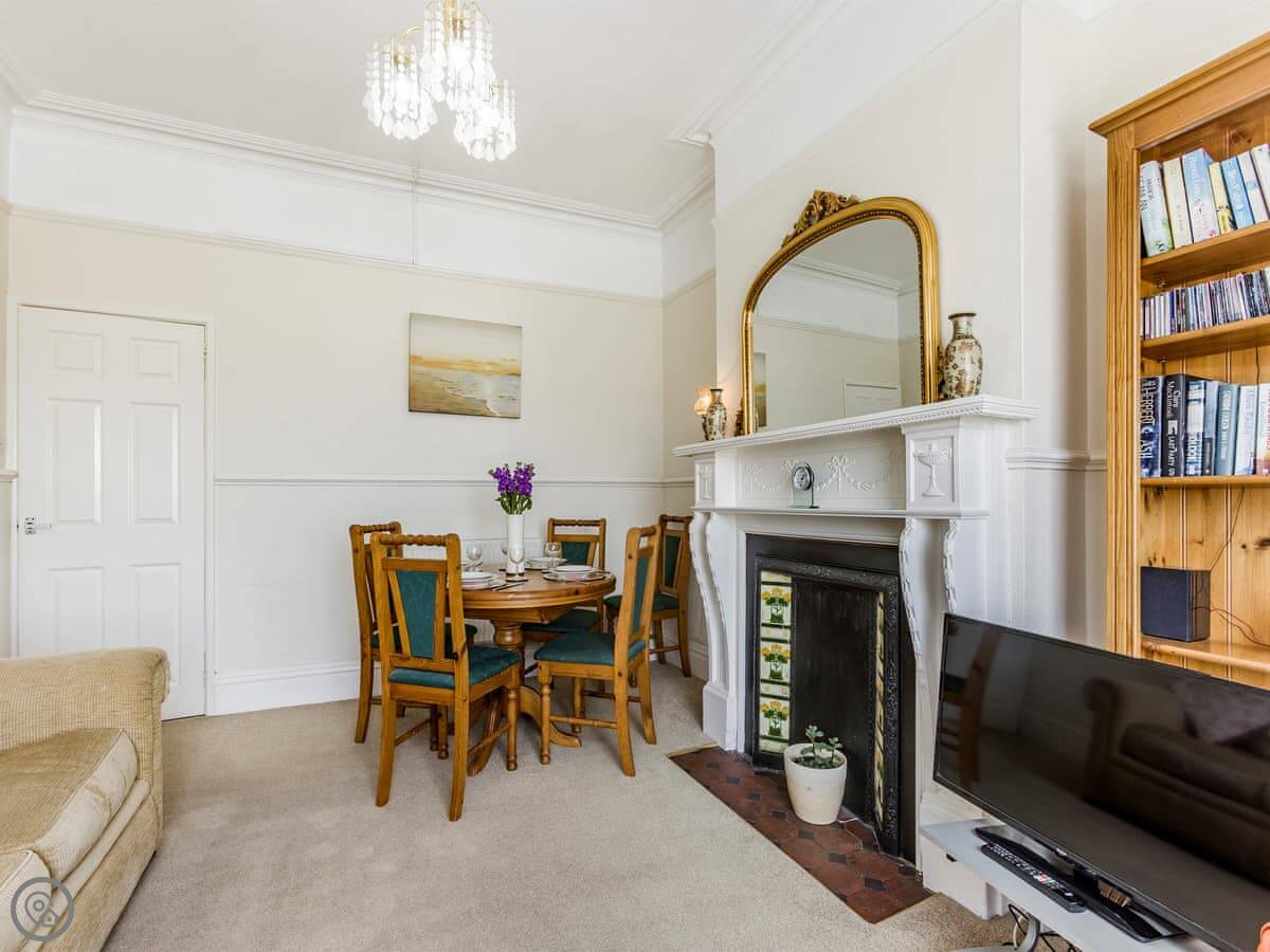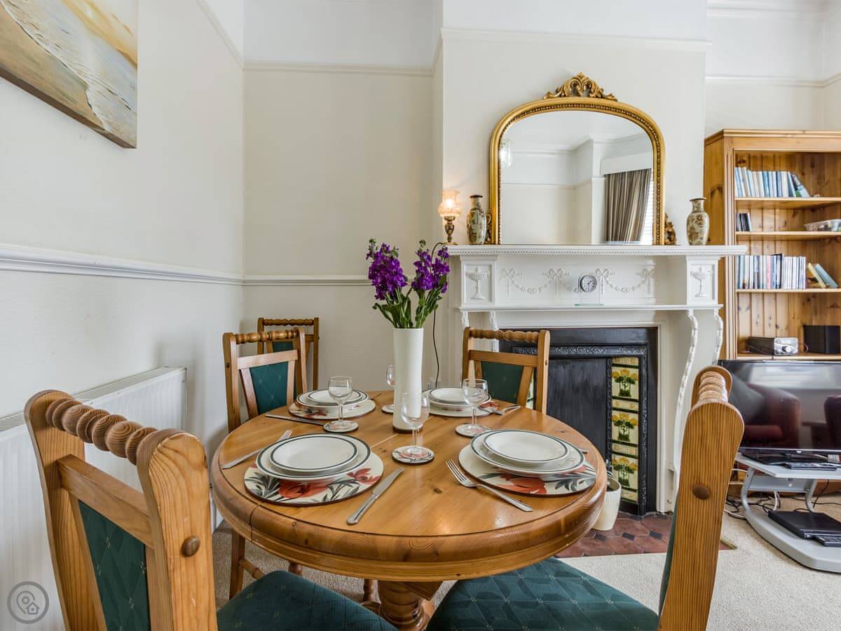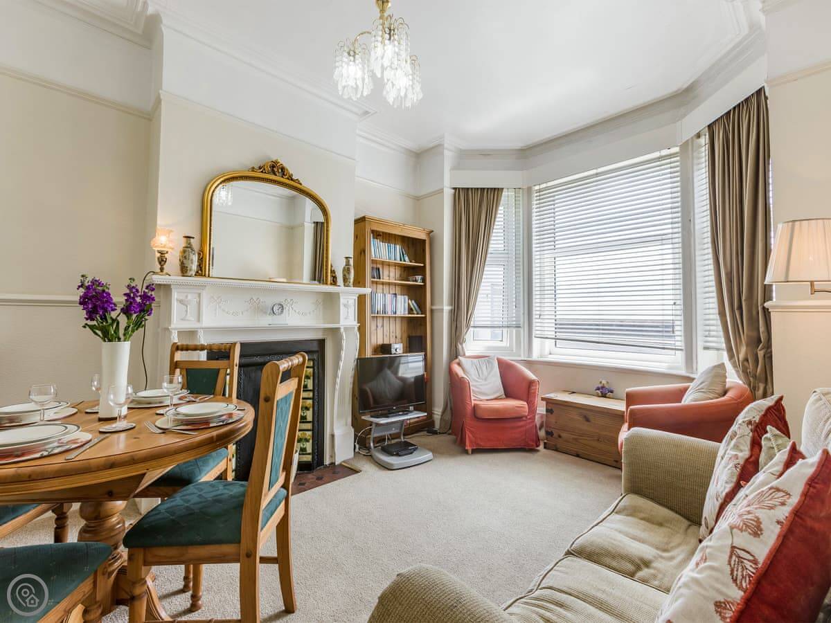 Seascape is a ground floor apartment in Exmouth. It's about a hundred yards from the beach. You can see the sea from the front windows.