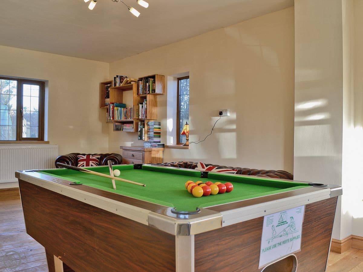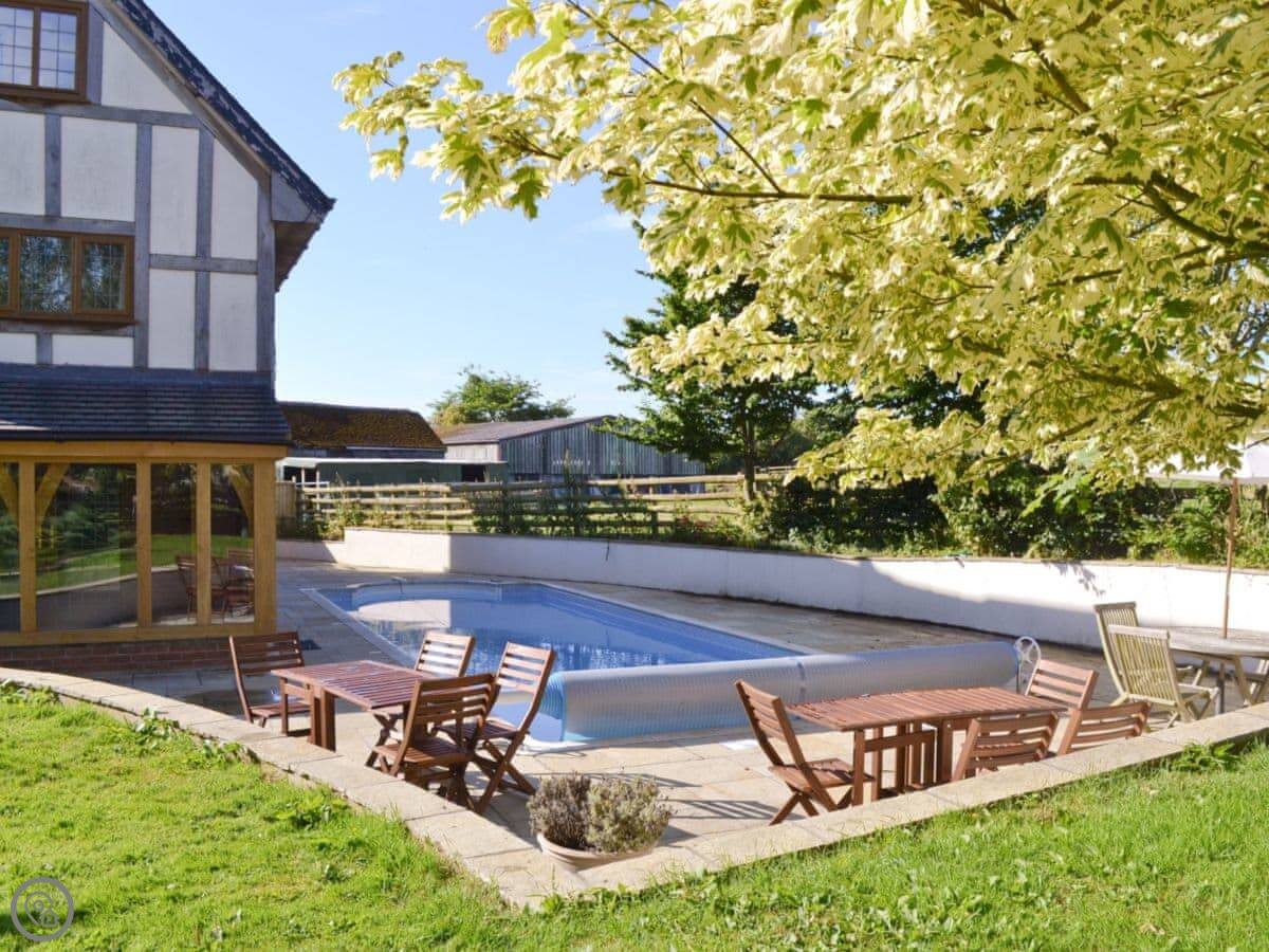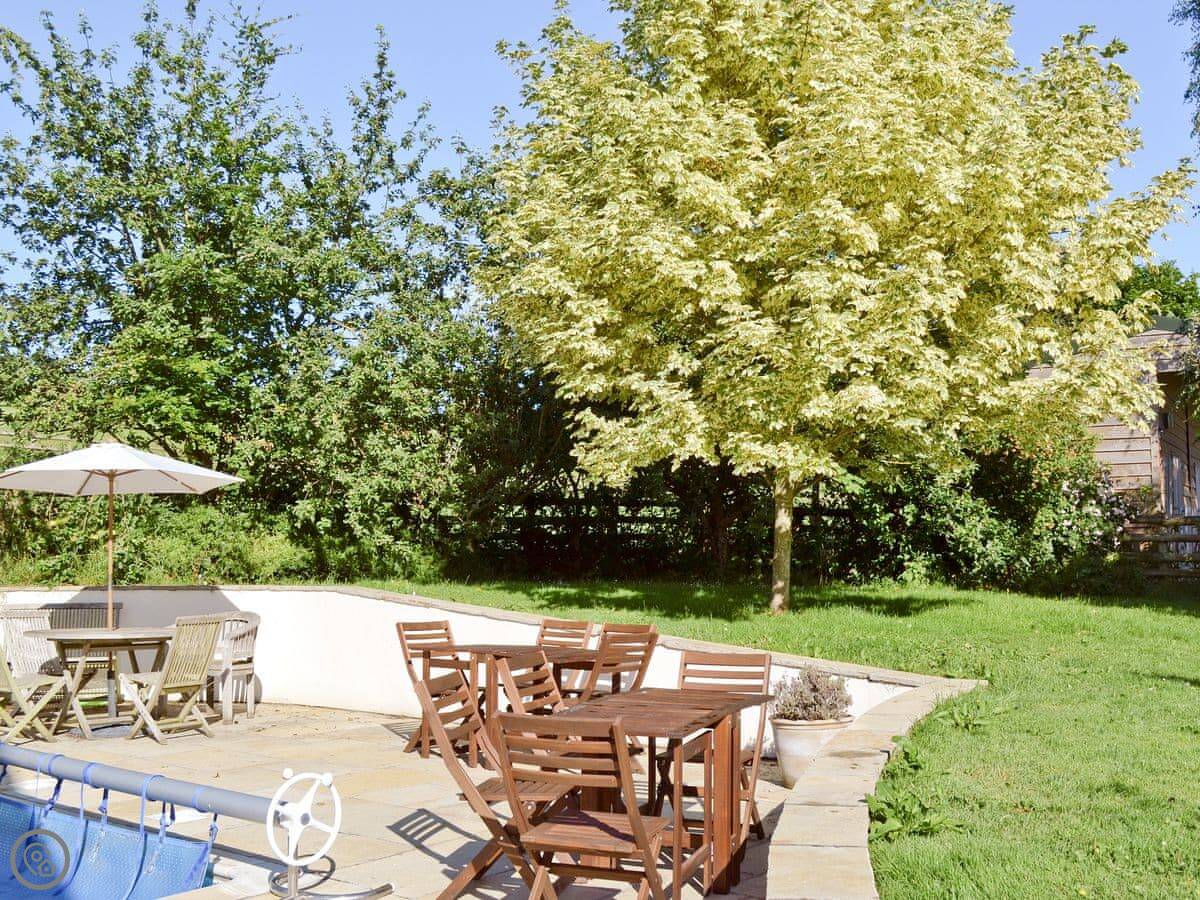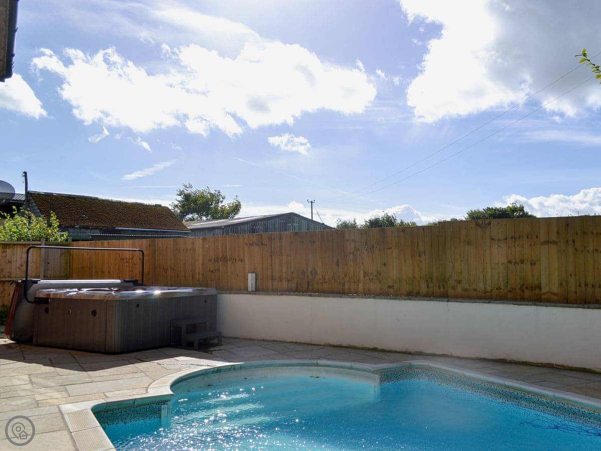 The garden is enclosed, which is handy. There's a games room and an outdoor swimming pool. Parking is on site.