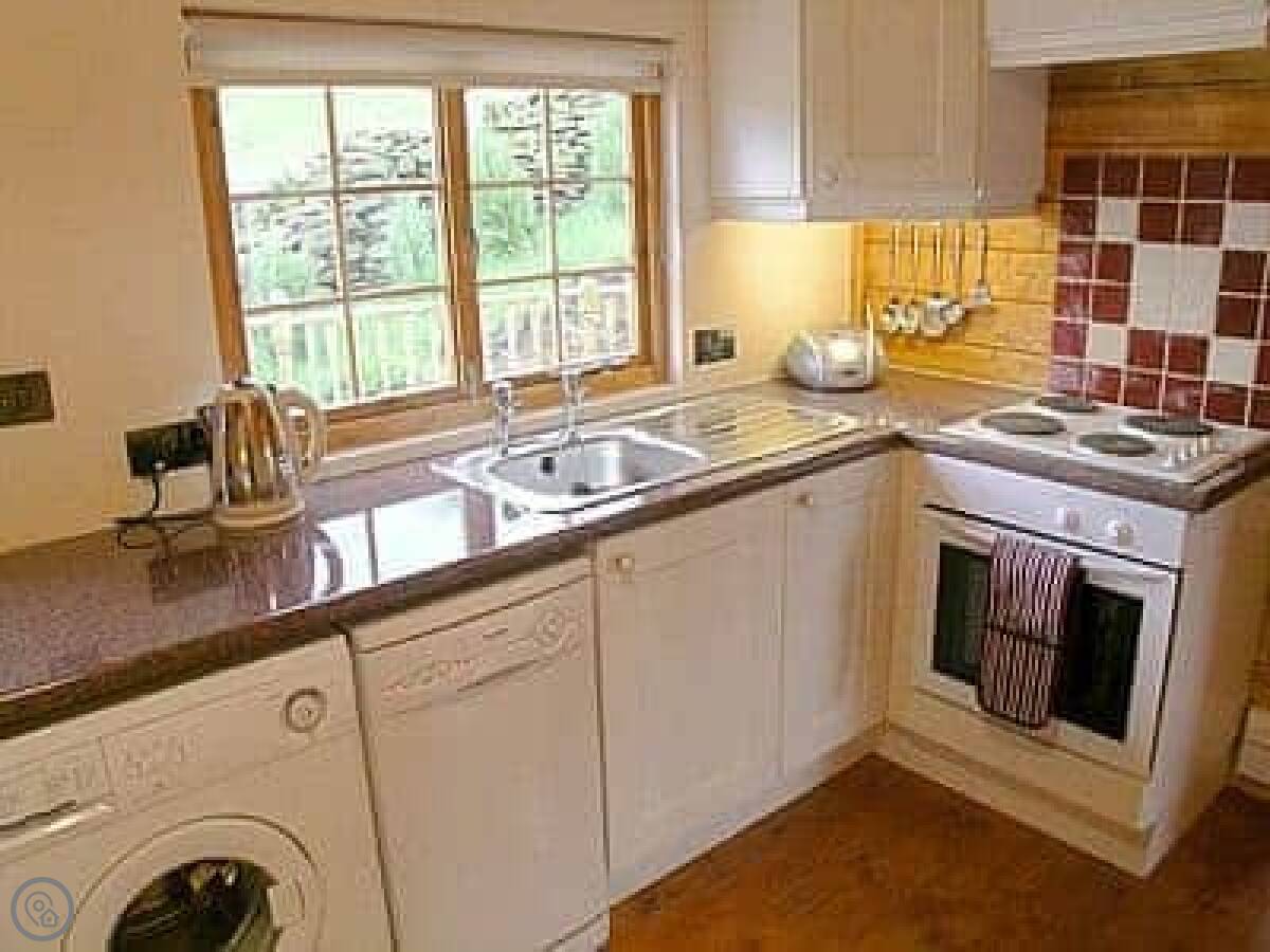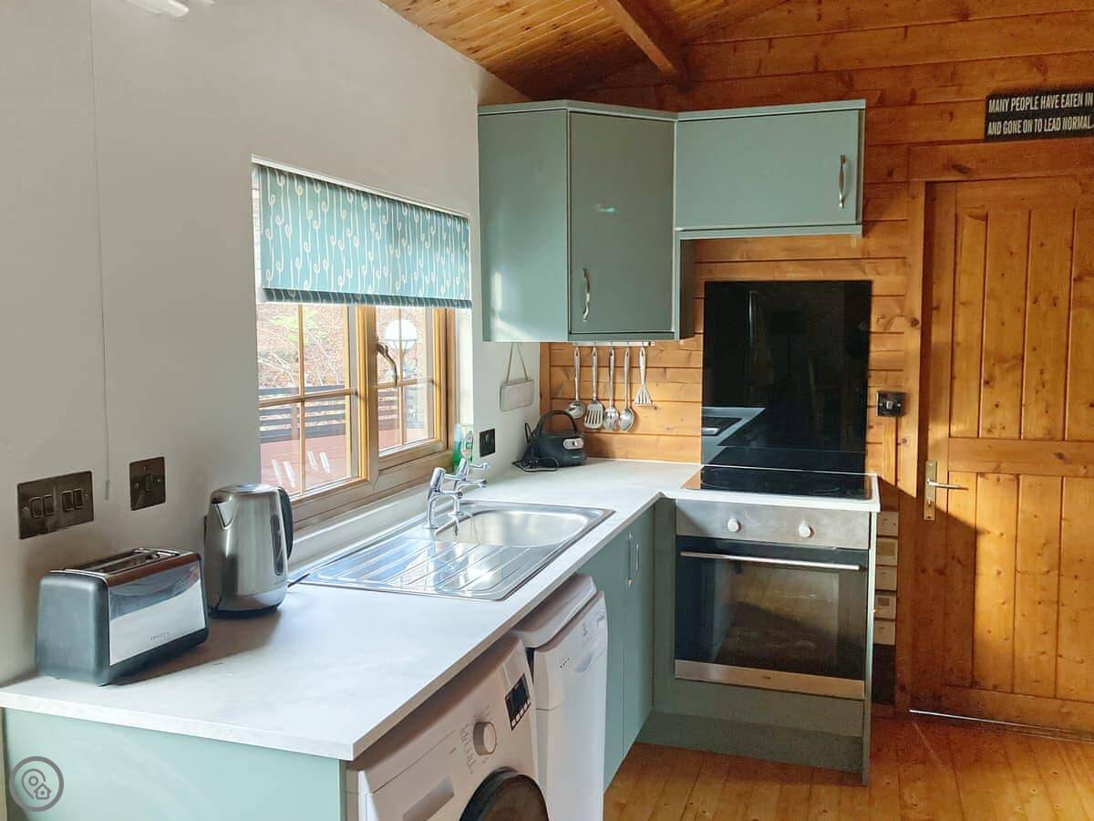 In the lodge there's a washing machine, dishwasher, TV, and parking. Bedding and towels are included. We can provide a cot and highchair. You can bring up to three dogs.