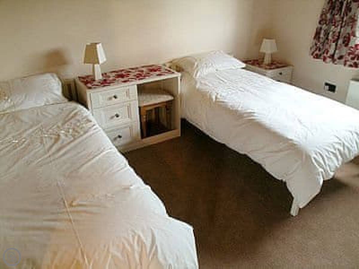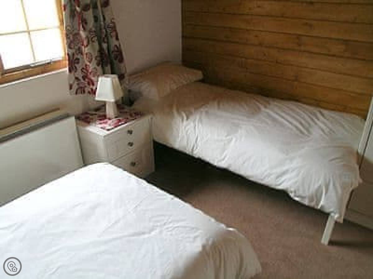 It sleeps five. Two bedrooms and a bathroom. It's got a 4 Star rating, which means it's well looked after. The hot tub is on the patio. The garden's enclosed, which is handy.