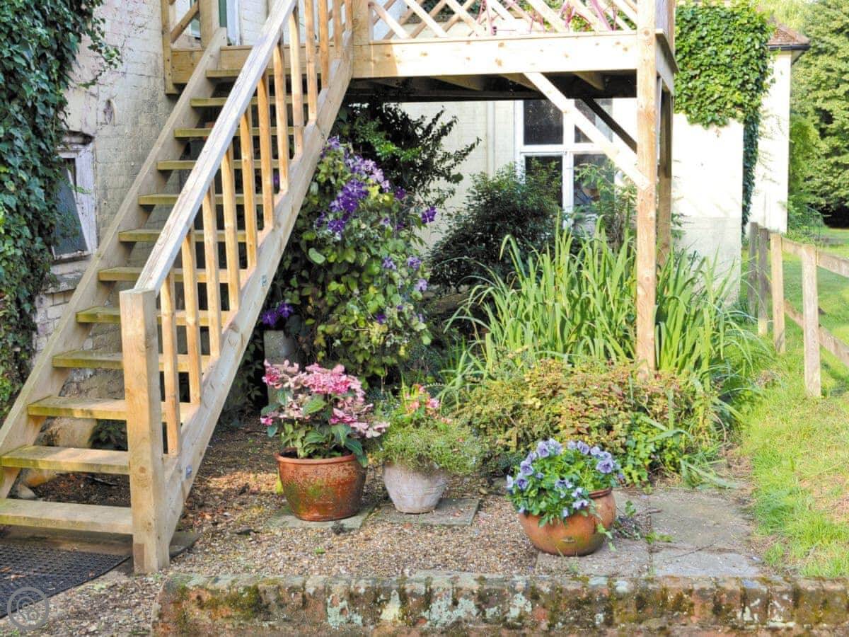 Alright, so Nightingales is the upstairs flat here. It's on the first floor of an old farm building, on our land. We've got about ten acres here, and it's all fenced in. You get your own bit of garden too.