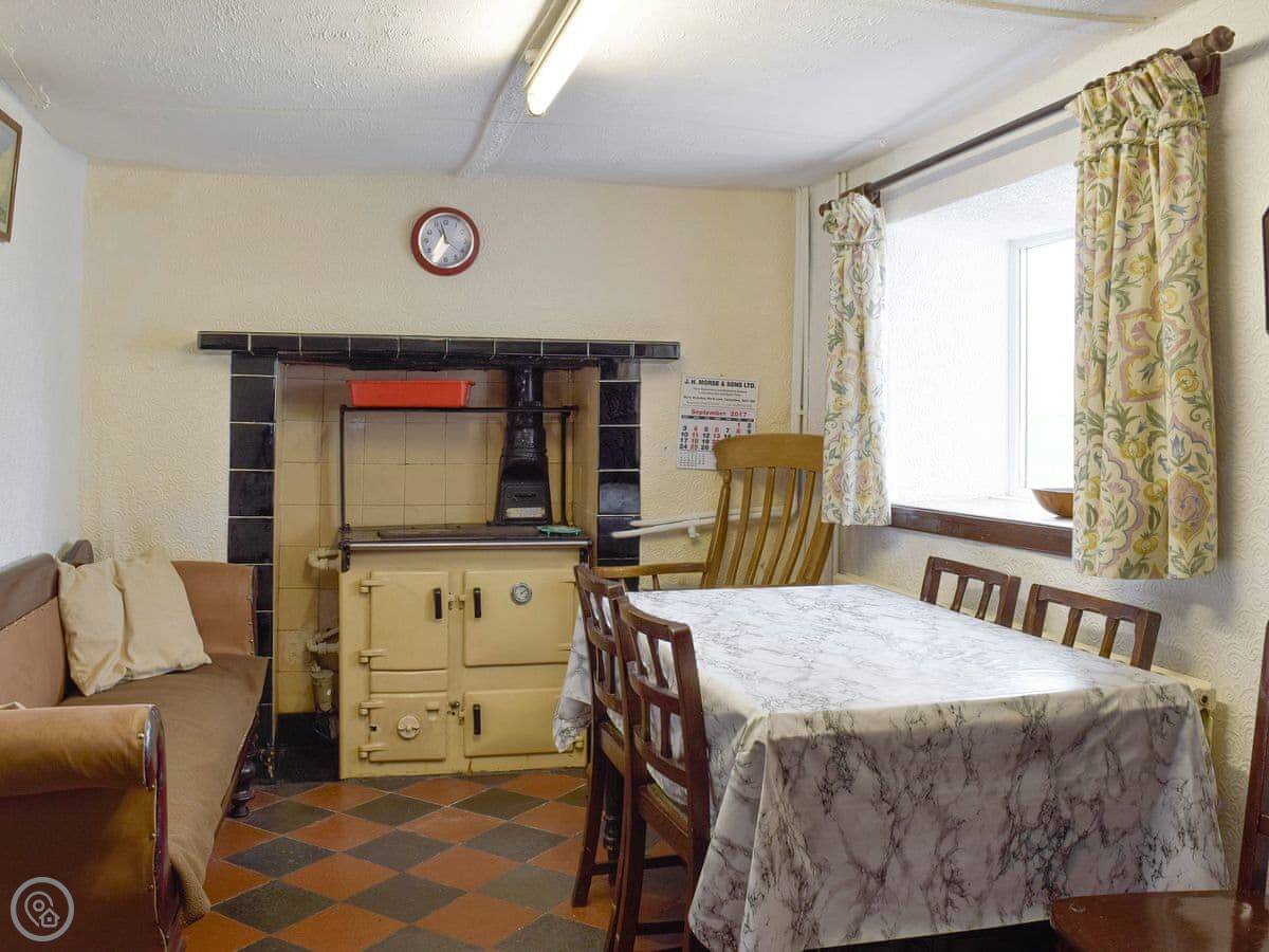 Inside, there's a main living room and then a separate parlour room with a piano and a big fireplace. The kitchen is small, but it works. There's a Rayburn in the breakfast room, but it's decorative, you don't cook on it.