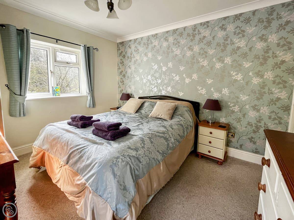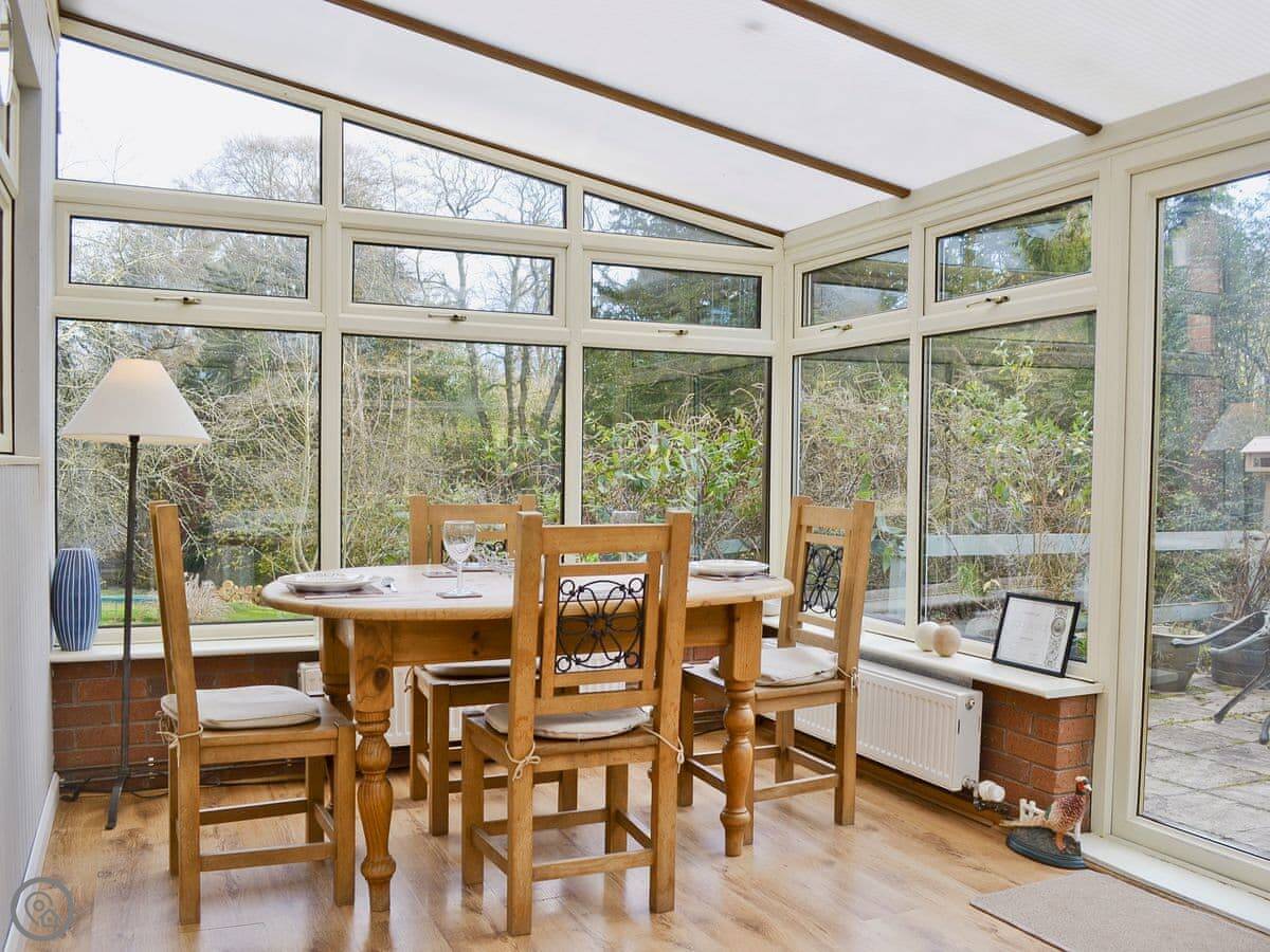 Damson Lodge is in Chetton. It's about ten minutes by car from Bridgnorth. It's a detached single-storey cottage, so it's all on the ground floor. Outside there's a patio area with a table and chairs, and it's quite private.