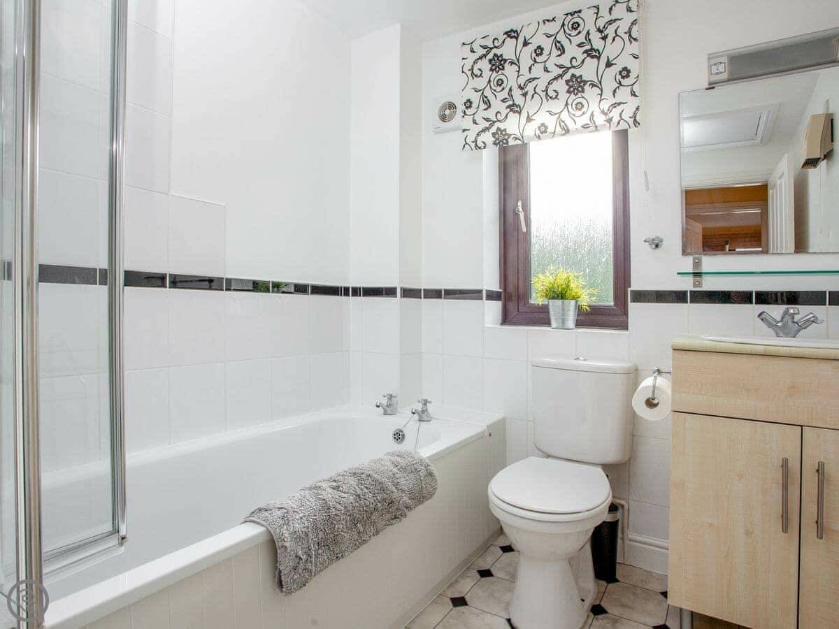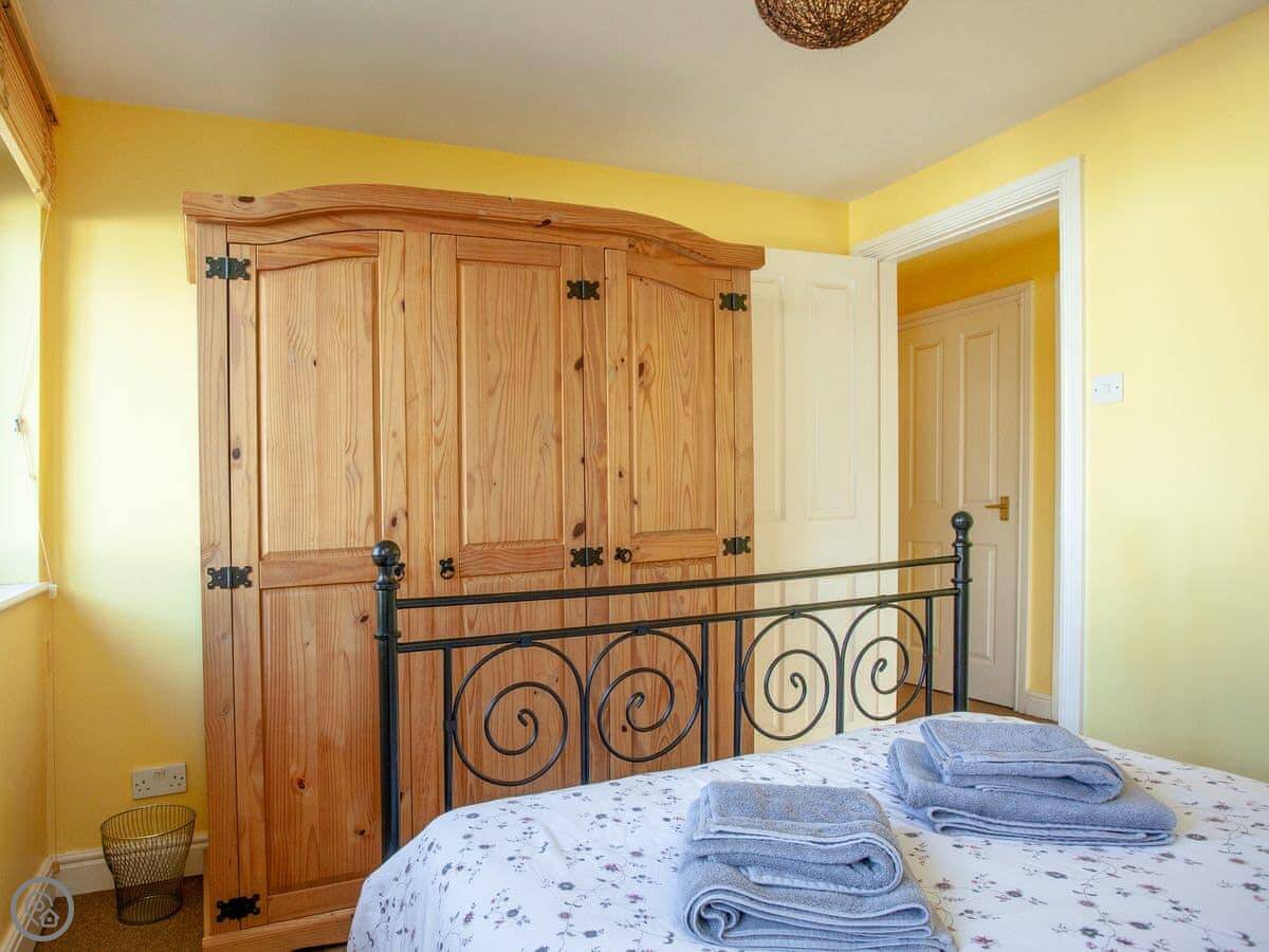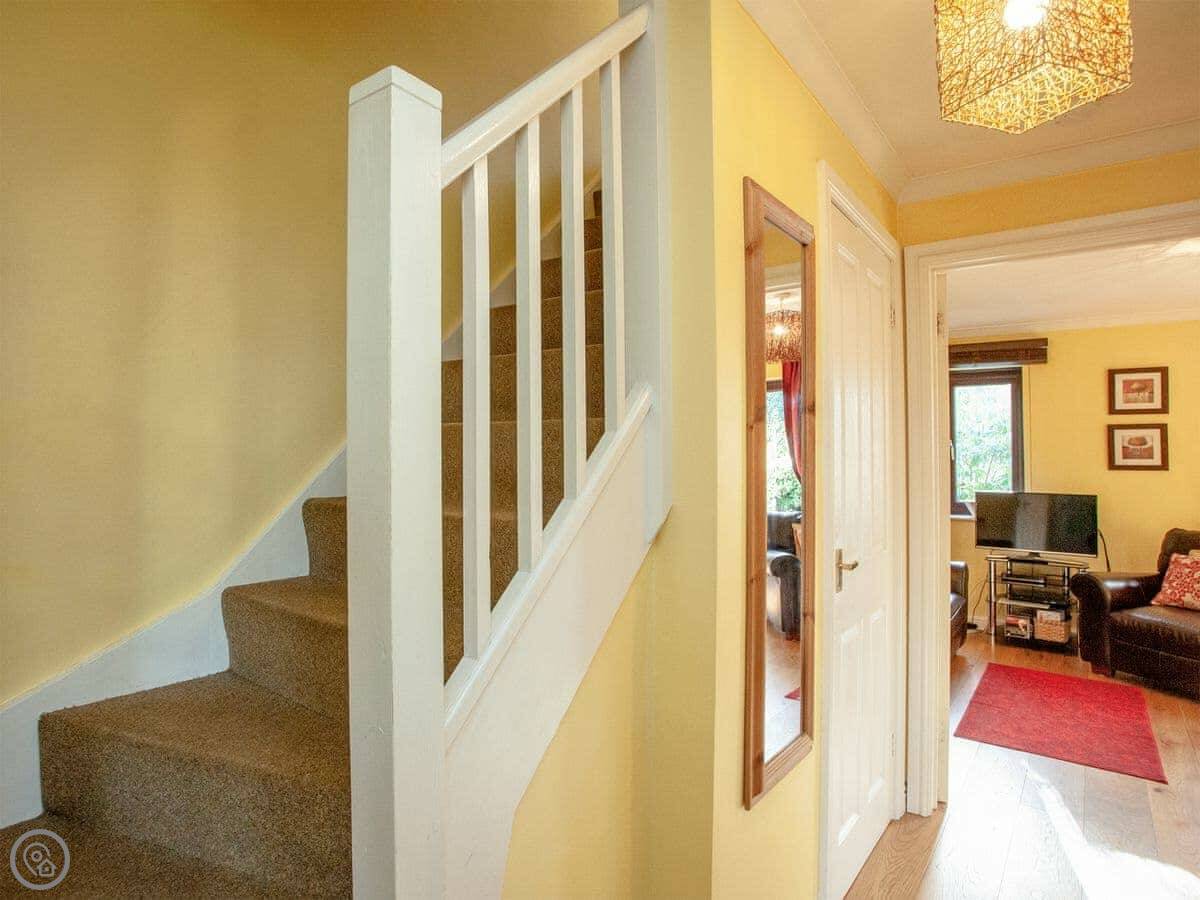 Inside, it's straightforward. Two bedrooms upstairs, one double and one twin. There's one bathroom with a shower. The stairs are fairly steep, as you'd expect. The bedrooms have been recarpeted for 2025. Everything you'd need is there: wifi, TV, washing machine, bedding and towels are included. We can provide a cot and highchair.