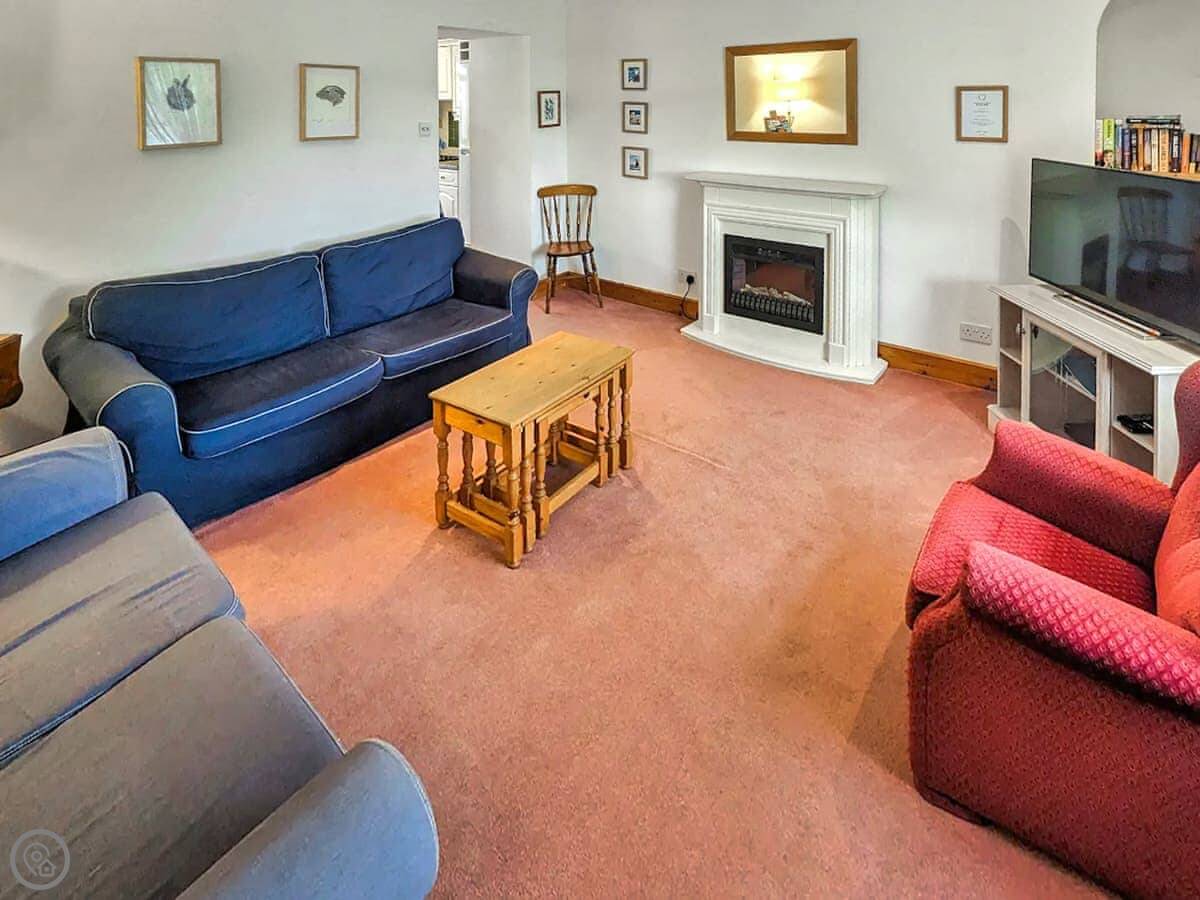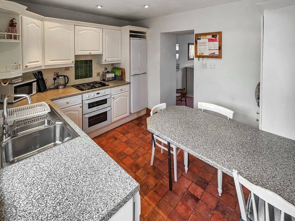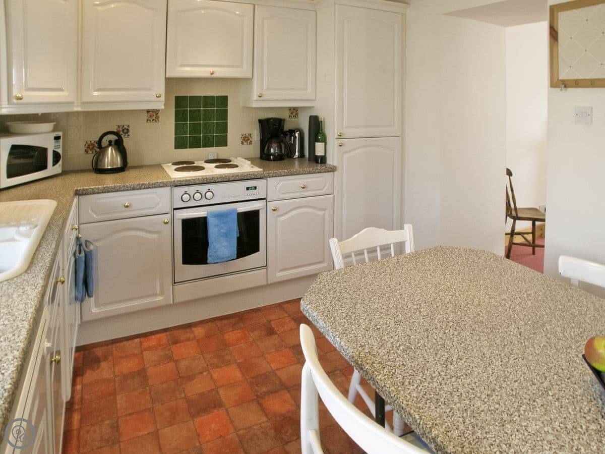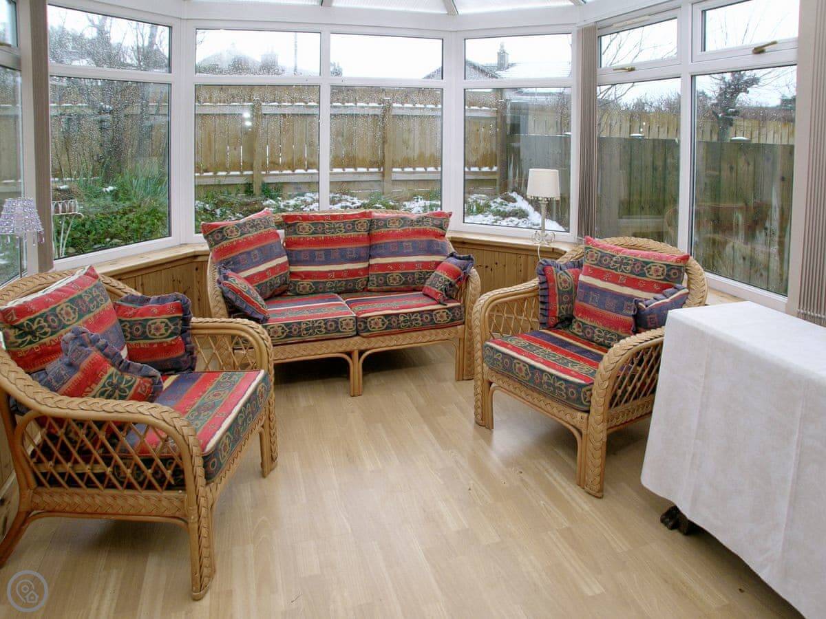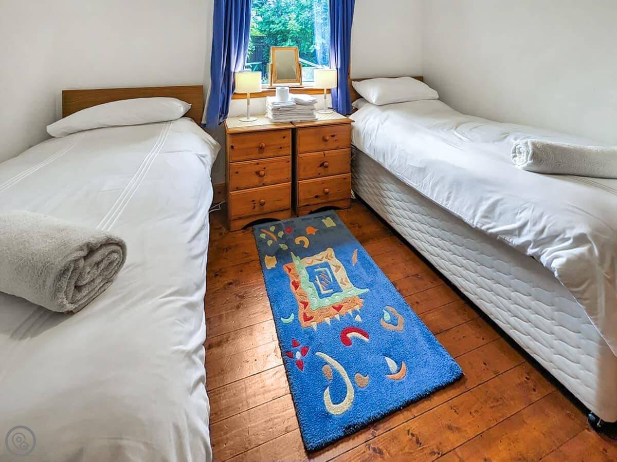 The cottage is a four star, sleeps four. Two bedrooms and one bathroom. That means it's comfortable and well-equipped, not just basic. You can bring two dogs. The garden is enclosed, which is good for them.
