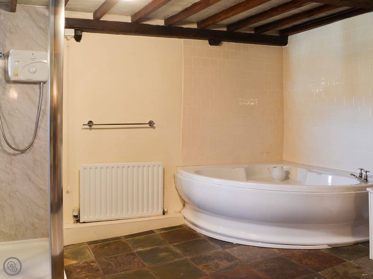 It sleeps two. One bedroom with a four poster bed, one bathroom. It's got a 4 Star rating so it's comfortable and well kitted out. The track up to it is unmade, so it's a bit bumpy. Fine for normal cars, just take it steady.