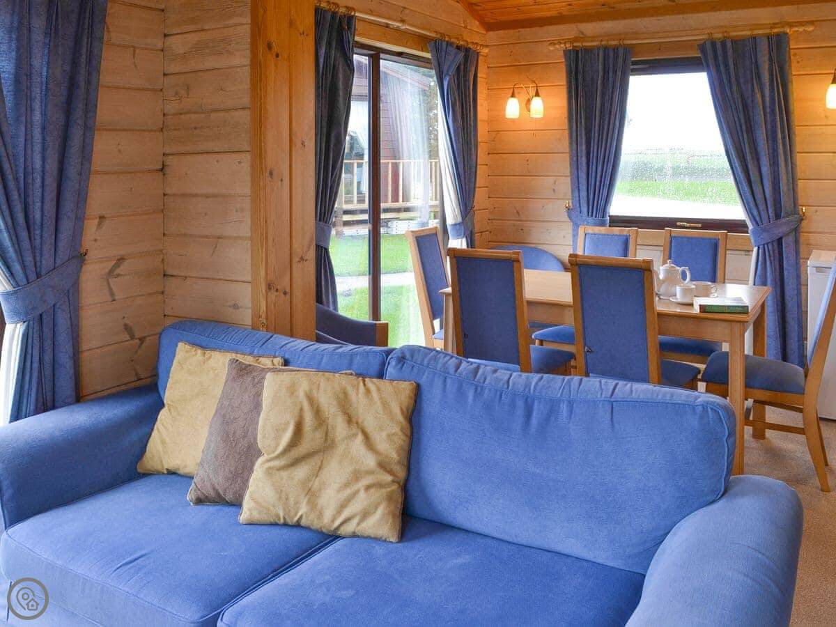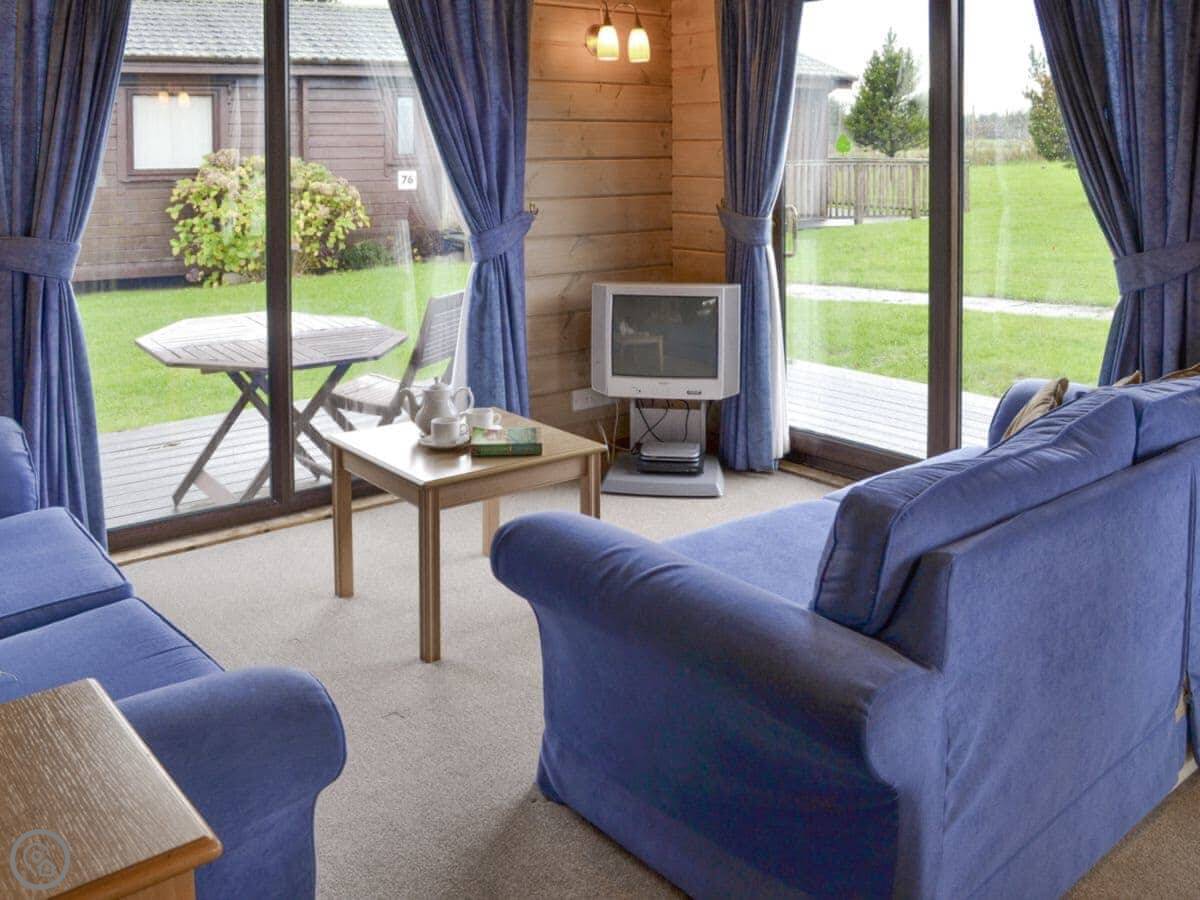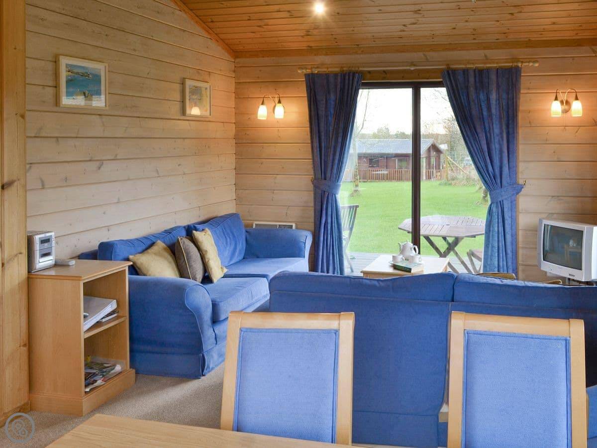 The Retreat is on the edge of a golf course near Northmoor in North Devon. It's a detached Scandinavian-style lodge. It's quiet, you won't get much noise except birds.