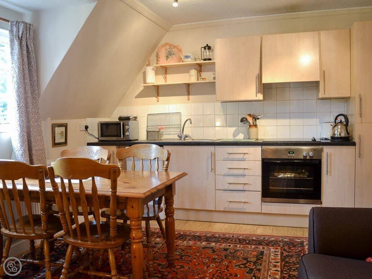 It sleeps four. Two bedrooms, one bathroom. It has a 3 Star rating. It's comfortable and clean, but not modern luxury. The style is that old Arts and Crafts look, which is nice.