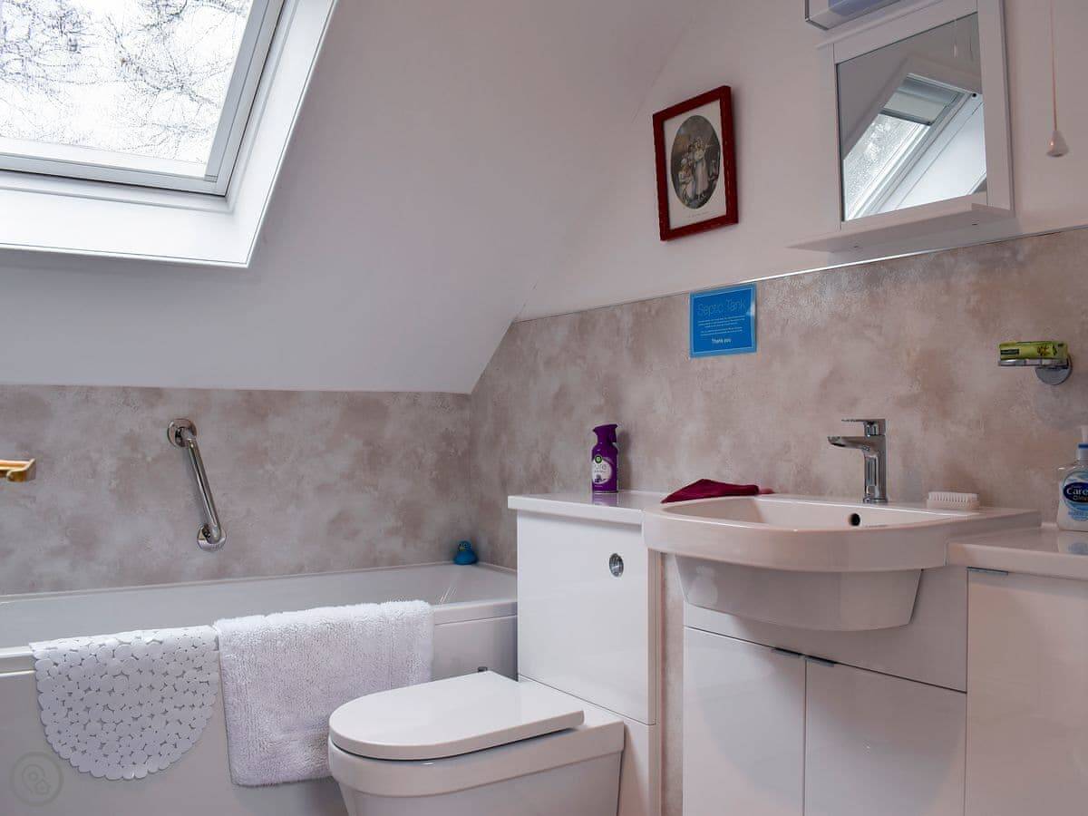 Inside, it's straightforward. There's a washing machine and a dishwasher. Bedding and towels are included. There's a TV and WiFi. We provide a cot and a highchair if you need them. There is on-site parking.