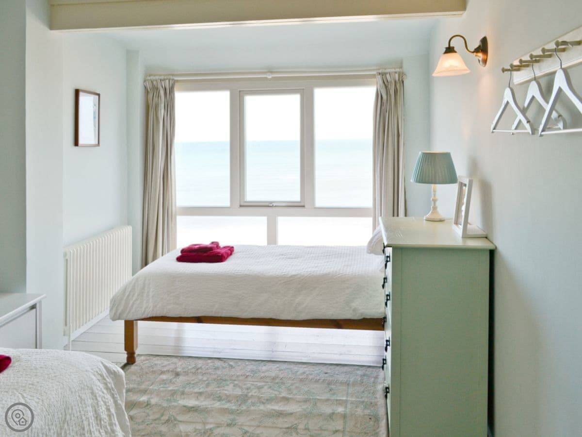 The front bedrooms and the attic room have the sea views. The attic room is big and has its own sofa area. The stairs up to it are a typical cottage staircase, so mind your head.