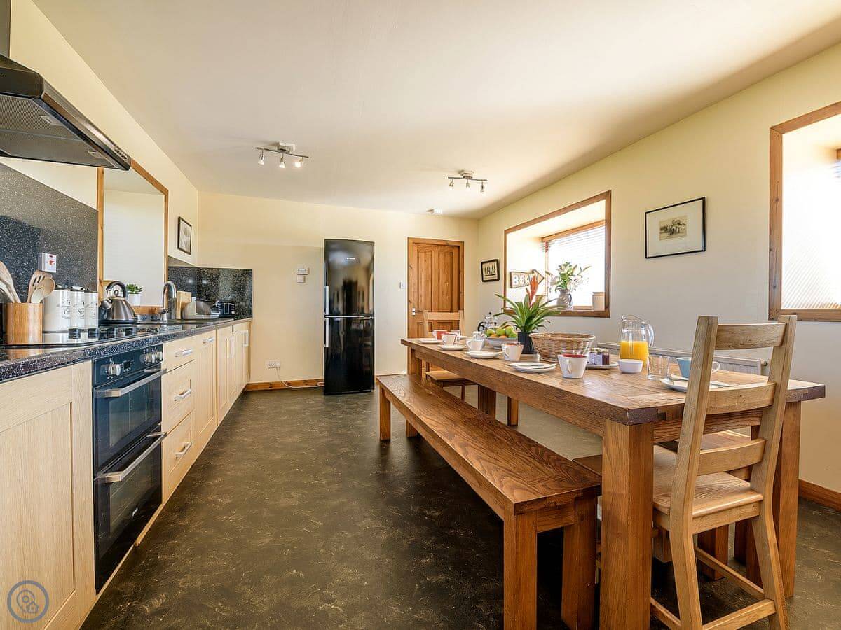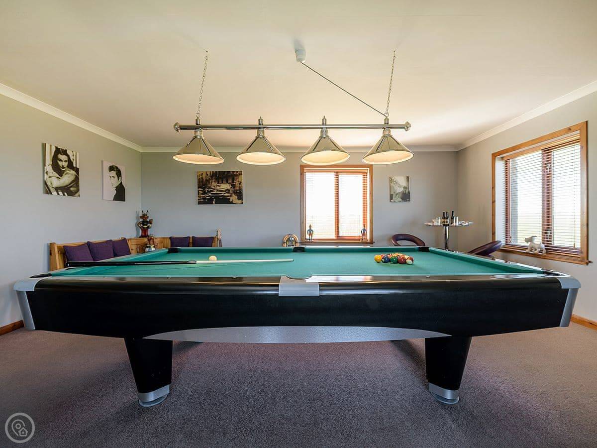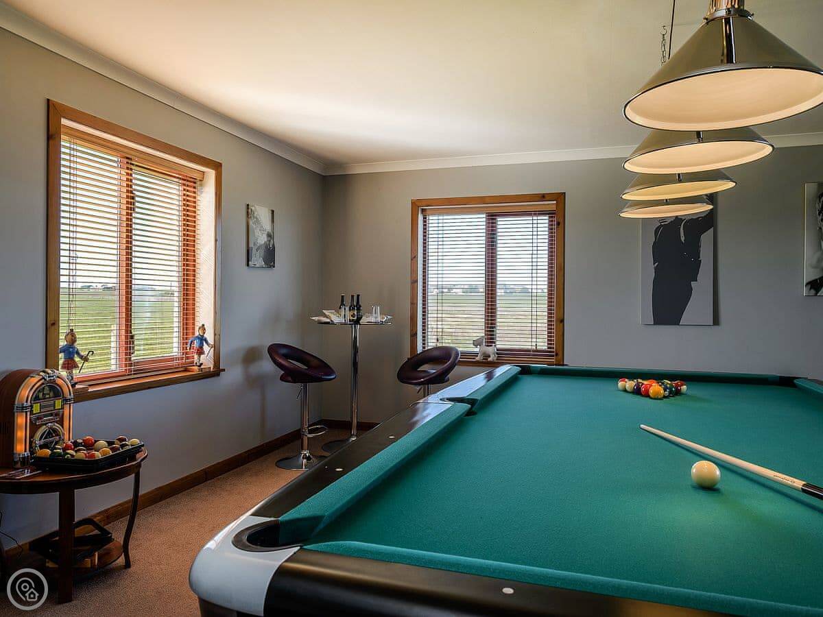 It sleeps seven. Three bedrooms, two bathrooms. It's got a 4 Star rating, so it's comfortable and well looked after. There's a woodburning stove for chilly nights, and a games room with a pool table. The garden is enclosed, which is good for dogs or kids. We allow up to three pets.