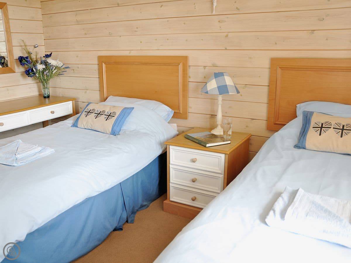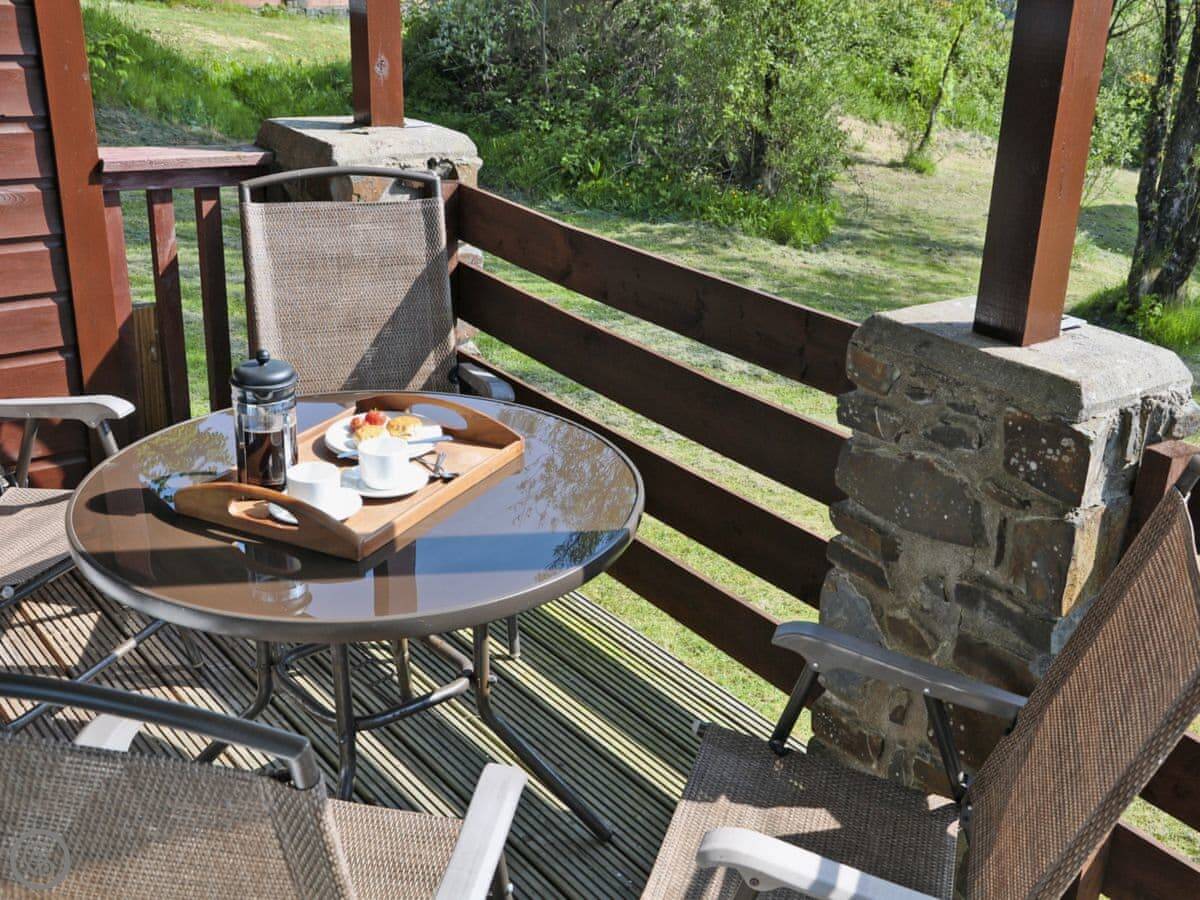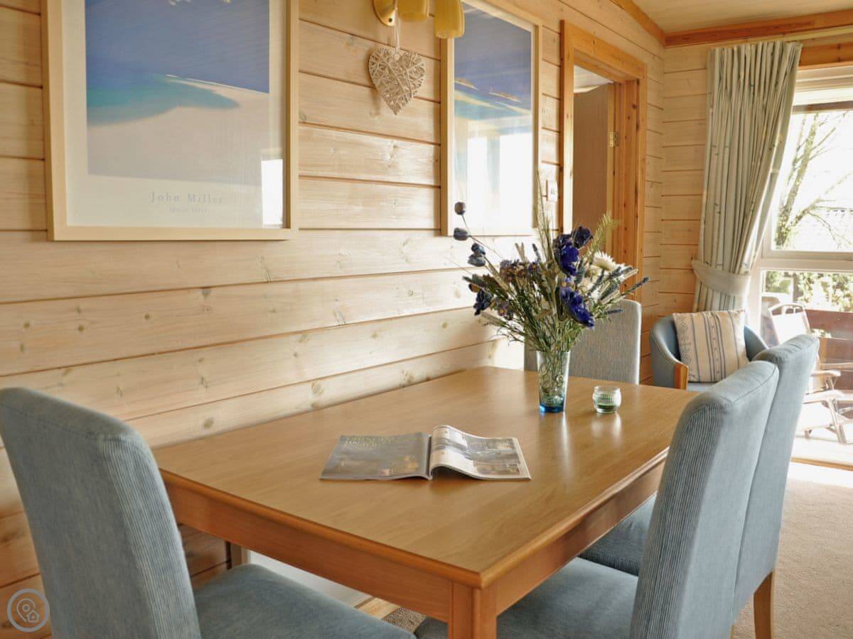 Hawthorne is a bungalow on a site just outside Northmoor, in Devon. It’s detached and all on one level, so no stairs to worry about. You’ve got your own enclosed decking area that goes around two sides, with a table and chairs out there.