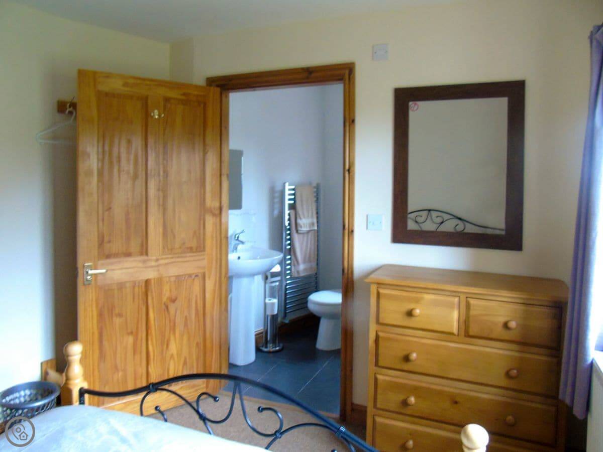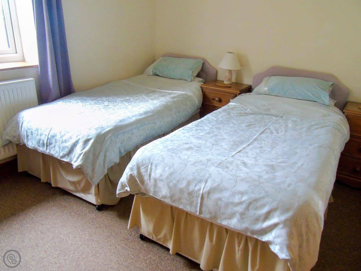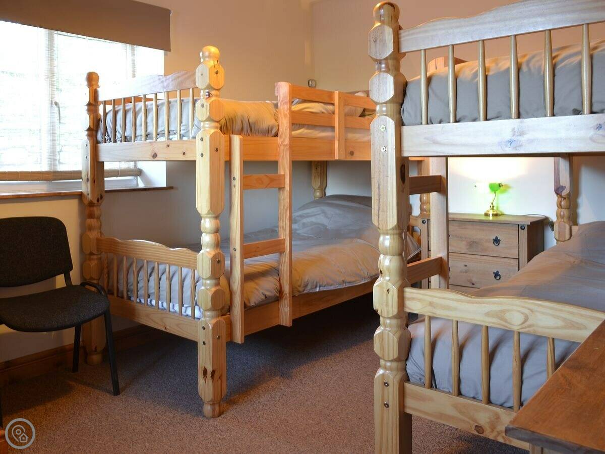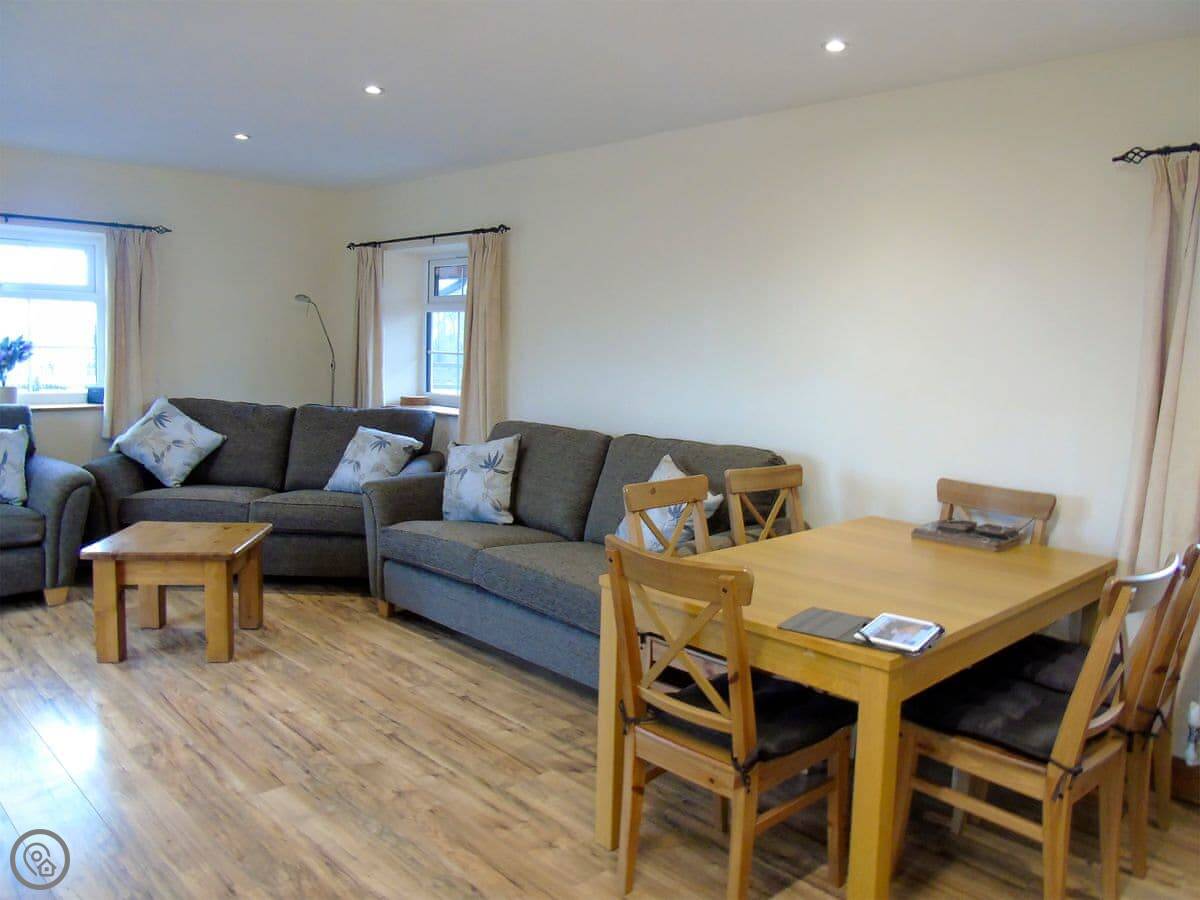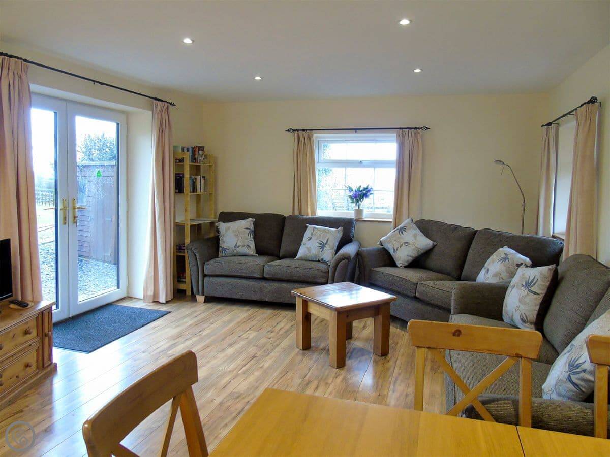 It sleeps eight. Three bedrooms, two bathrooms. One bedroom and a bathroom are on the ground floor. It has a 4 Star rating. It's comfortable and well-equipped, not luxurious. It's a solid, practical place for a group. The doorways are wide and there are no steps at the entrance, so it works well for wheelchair users.