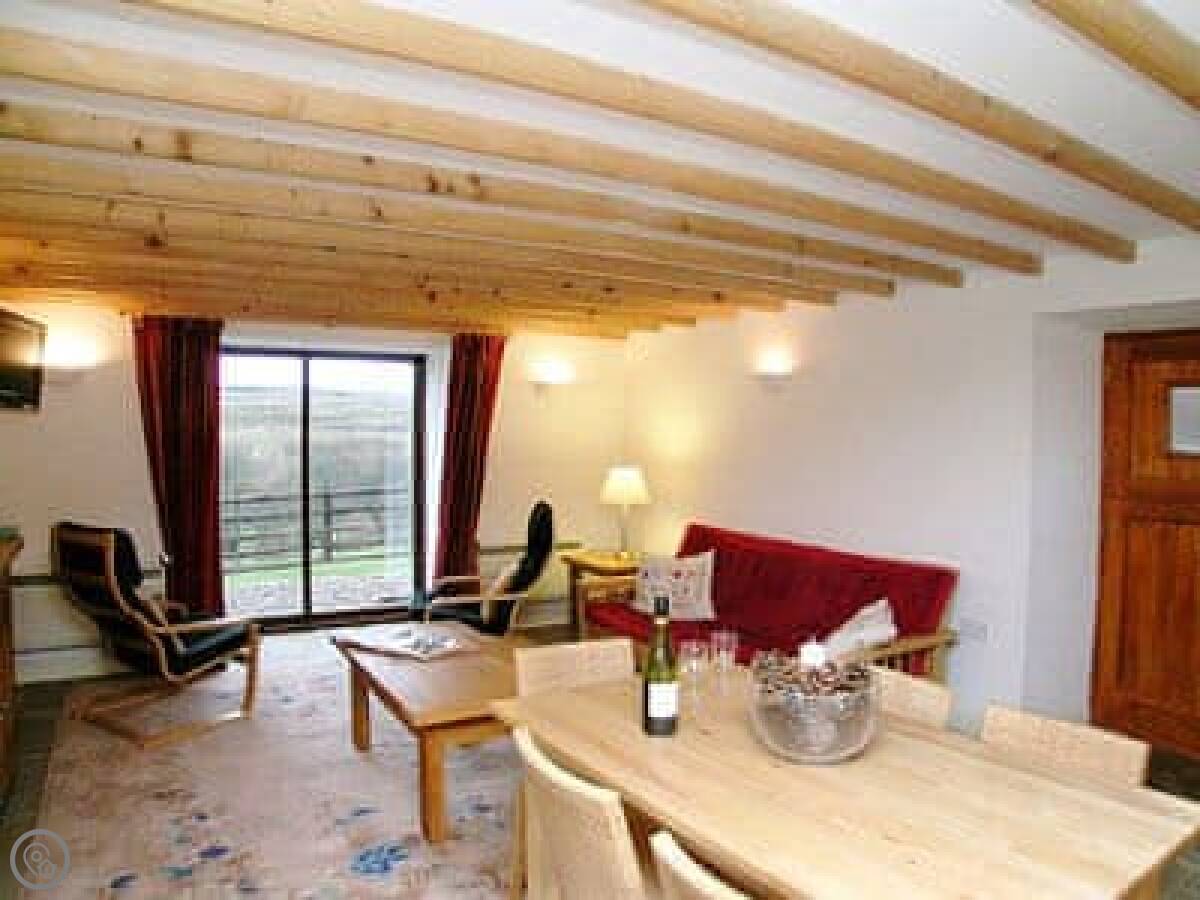 You're surrounded by the farm's own land, about twenty acres of fields. The view from the back is across the moor towards Castleton. It's a proper view, no other houses in the way.