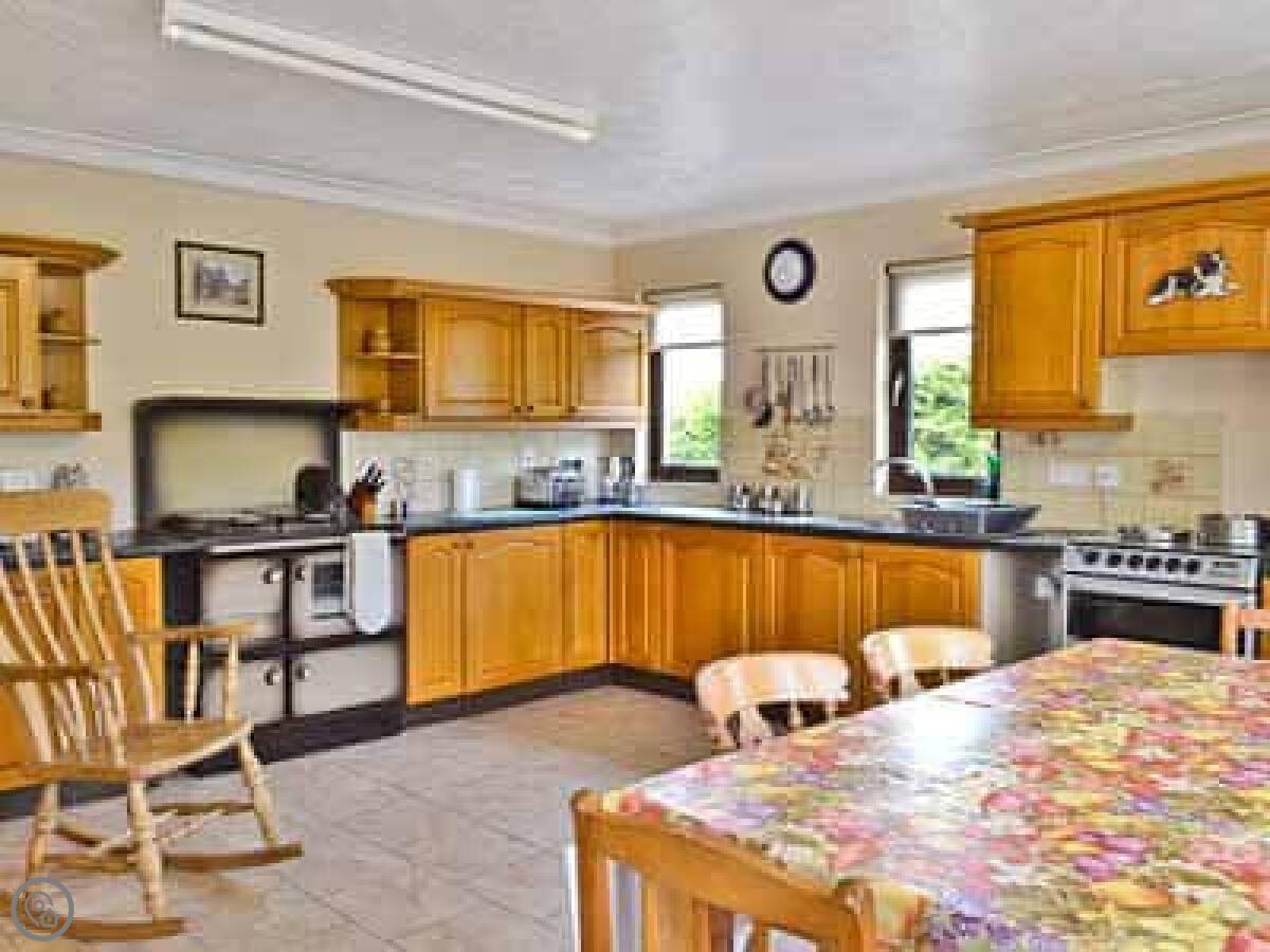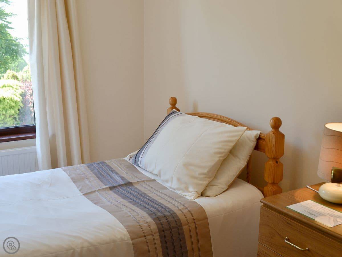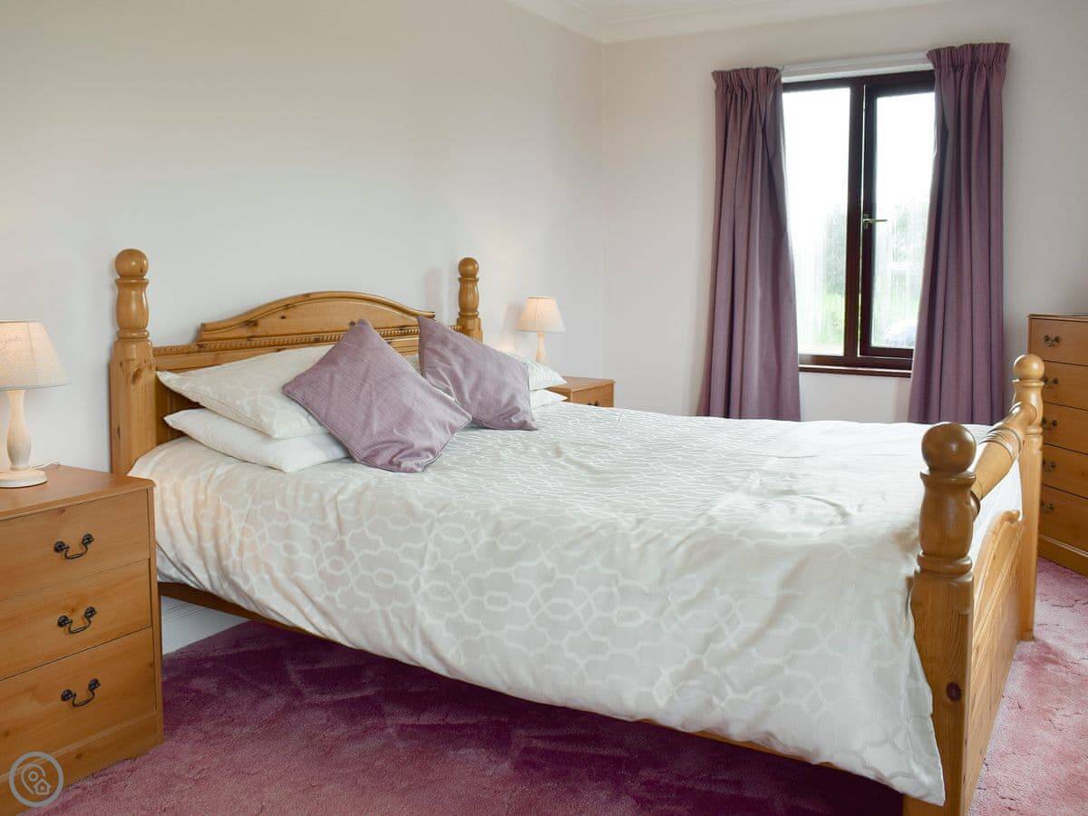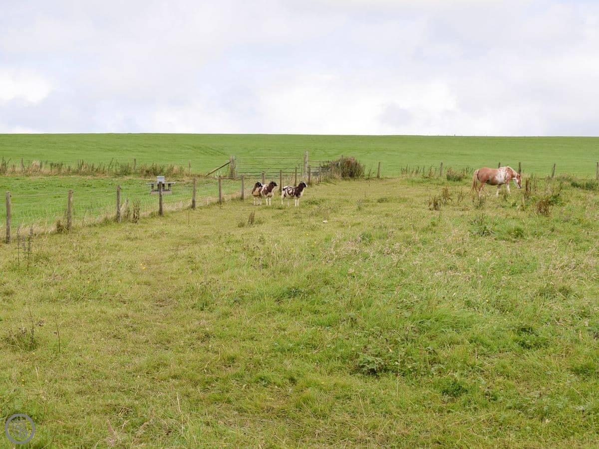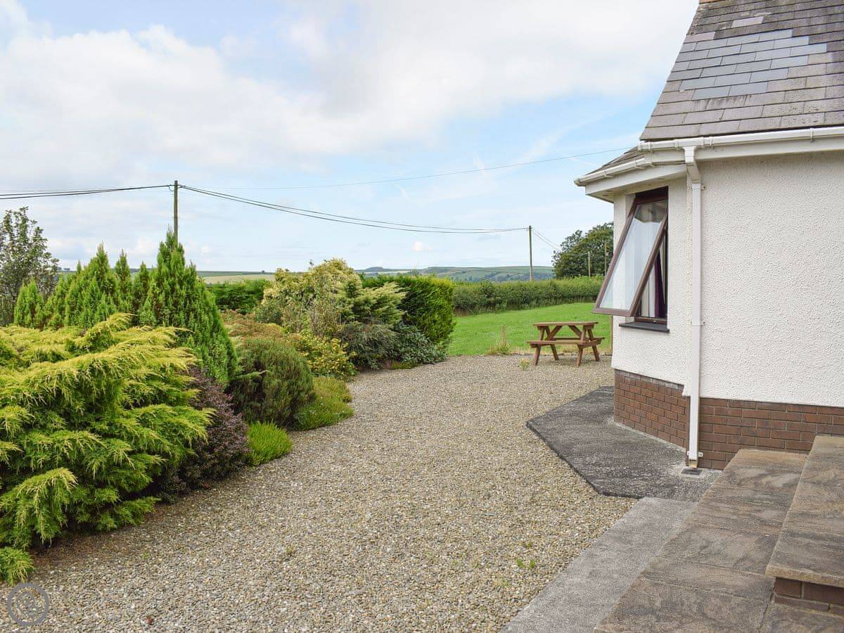 Bryneirin is a bungalow on its own, outside Talgarreg. The garden is big. It's mostly lawn, so good if you've got kids who want to run about. There's a pony called Rosie in the next field. She's friendly.