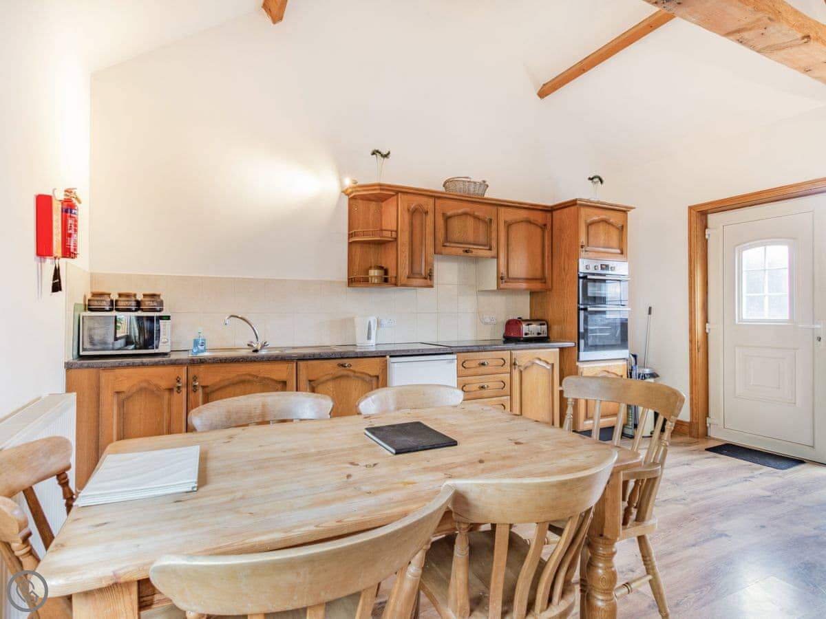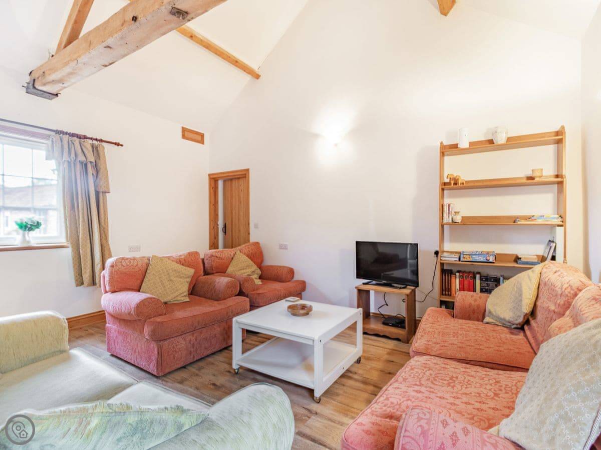 It's a converted barn. It sleeps six but there are only two bedrooms, so they're quite big. The bathroom is downstairs. It's got a shower. It's open plan upstairs.