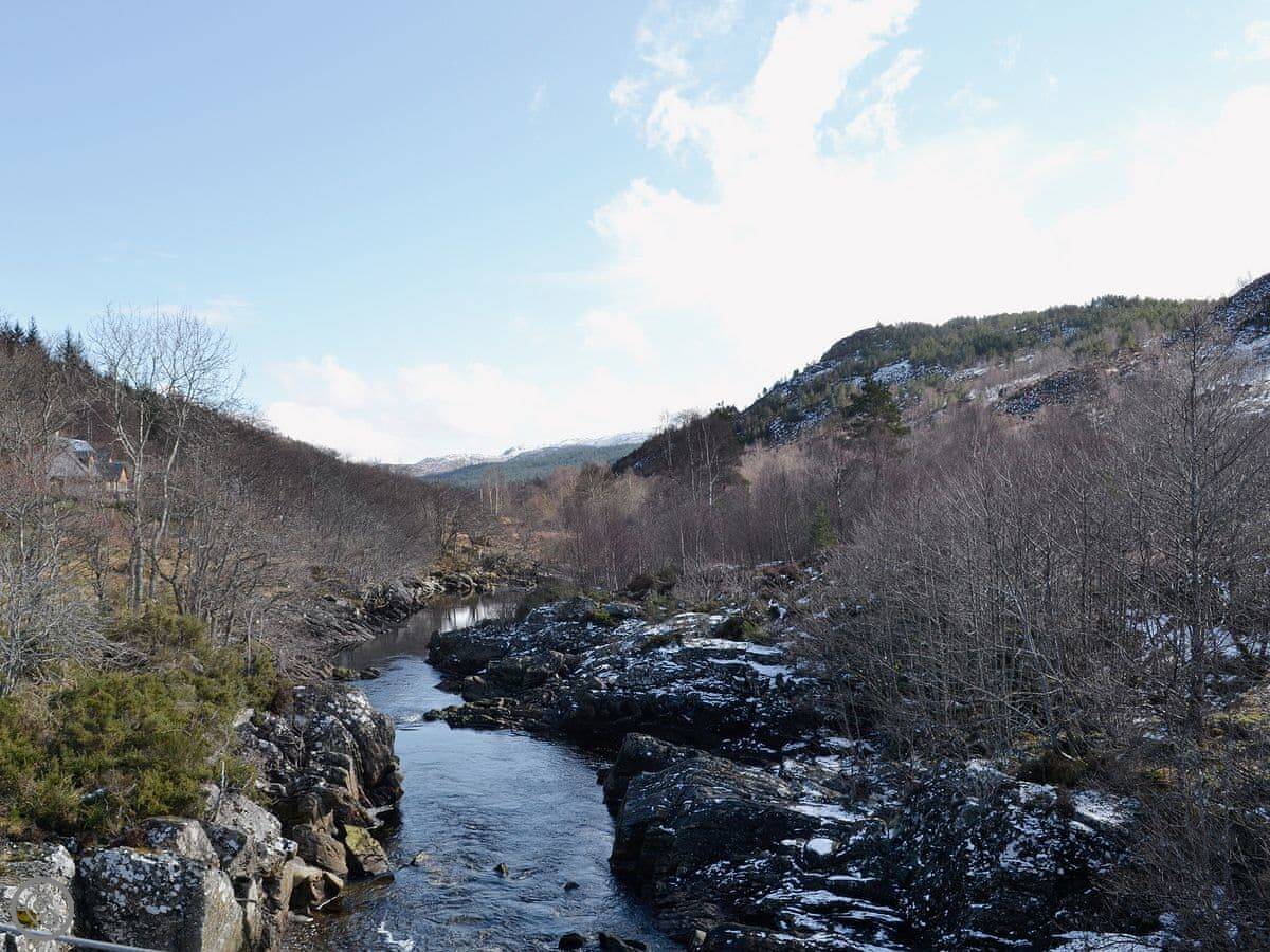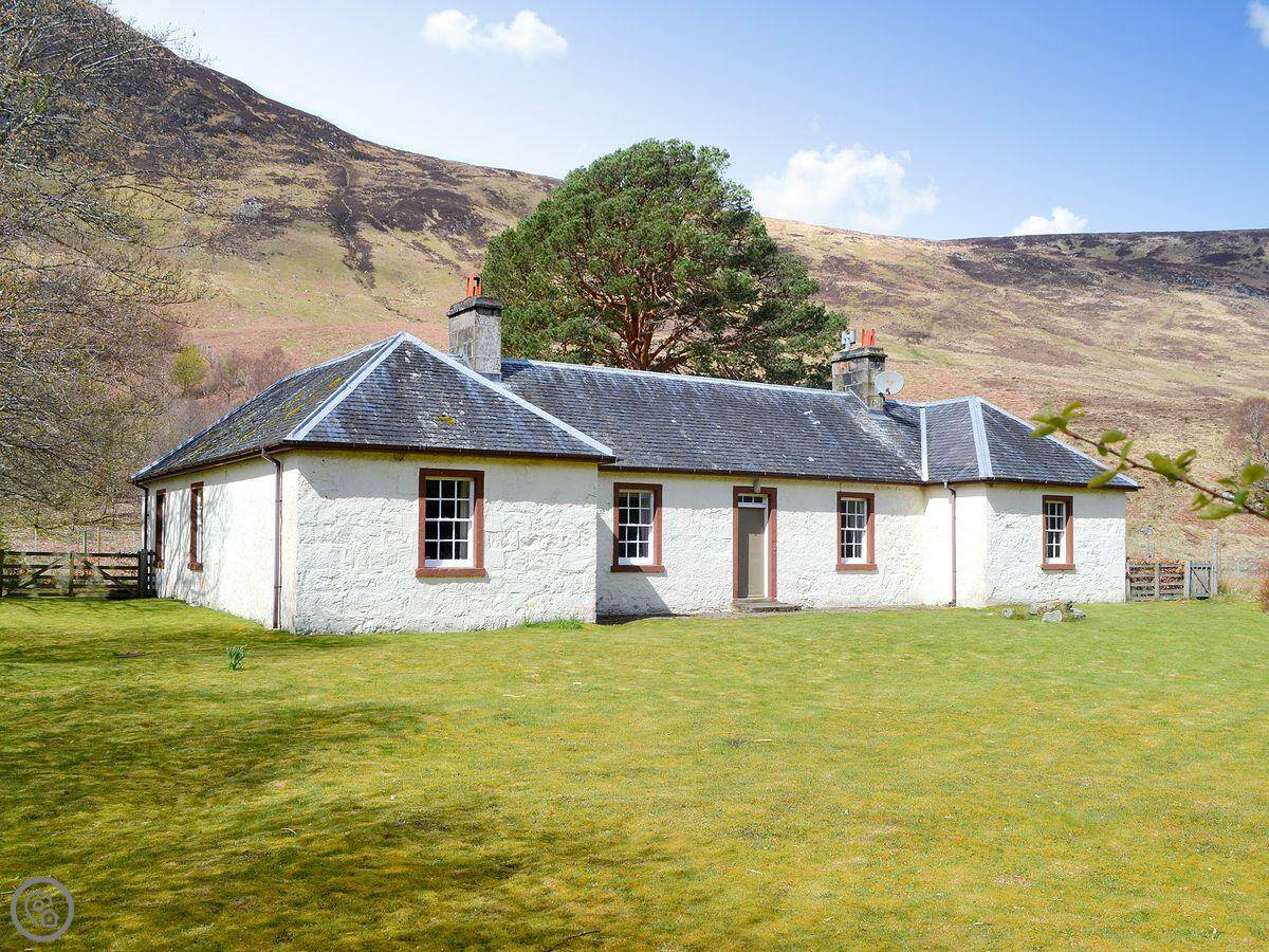 In a superb location in a remote highland glen, the setting for television’s ’A Glen for All Seasons’, this old Church of Scotland Manse stands detached in ¼ acre of fenced secluded gardens within 3-acre riverside grounds, all with wonderful views over the valley and surrounding mountains. Completely refurbished and decorated with style, it is perfect for nature lovers and walkers. There is excellent bird-watching, deer stalking, fly fishing, mountaineering and hill walking locally. Inverness, the hub of the Highlands, is just a 45-minute drive away. Built on the banks of the River Ness, it boasts a red sandstone castle and offers good shopping and other holiday attractions. Shop and pub 10 miles, restaurant 12 miles.