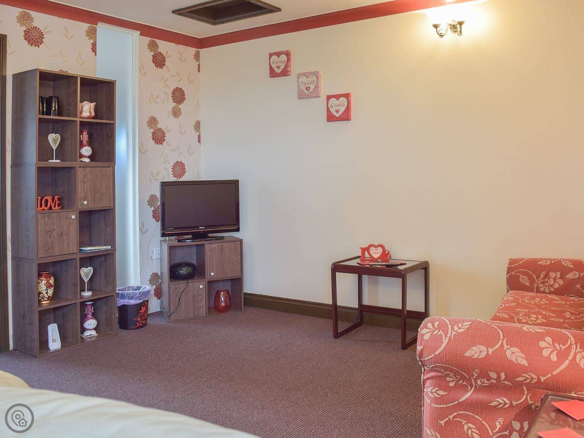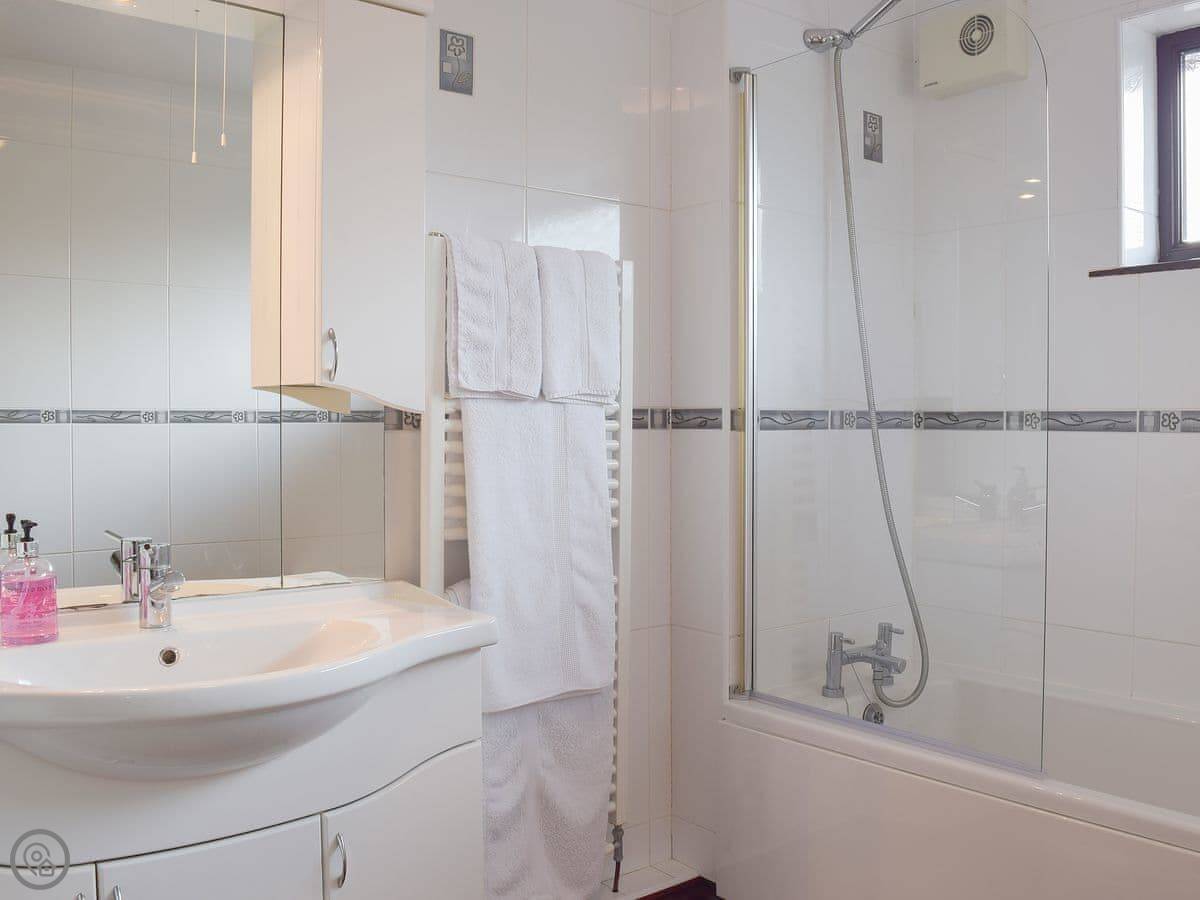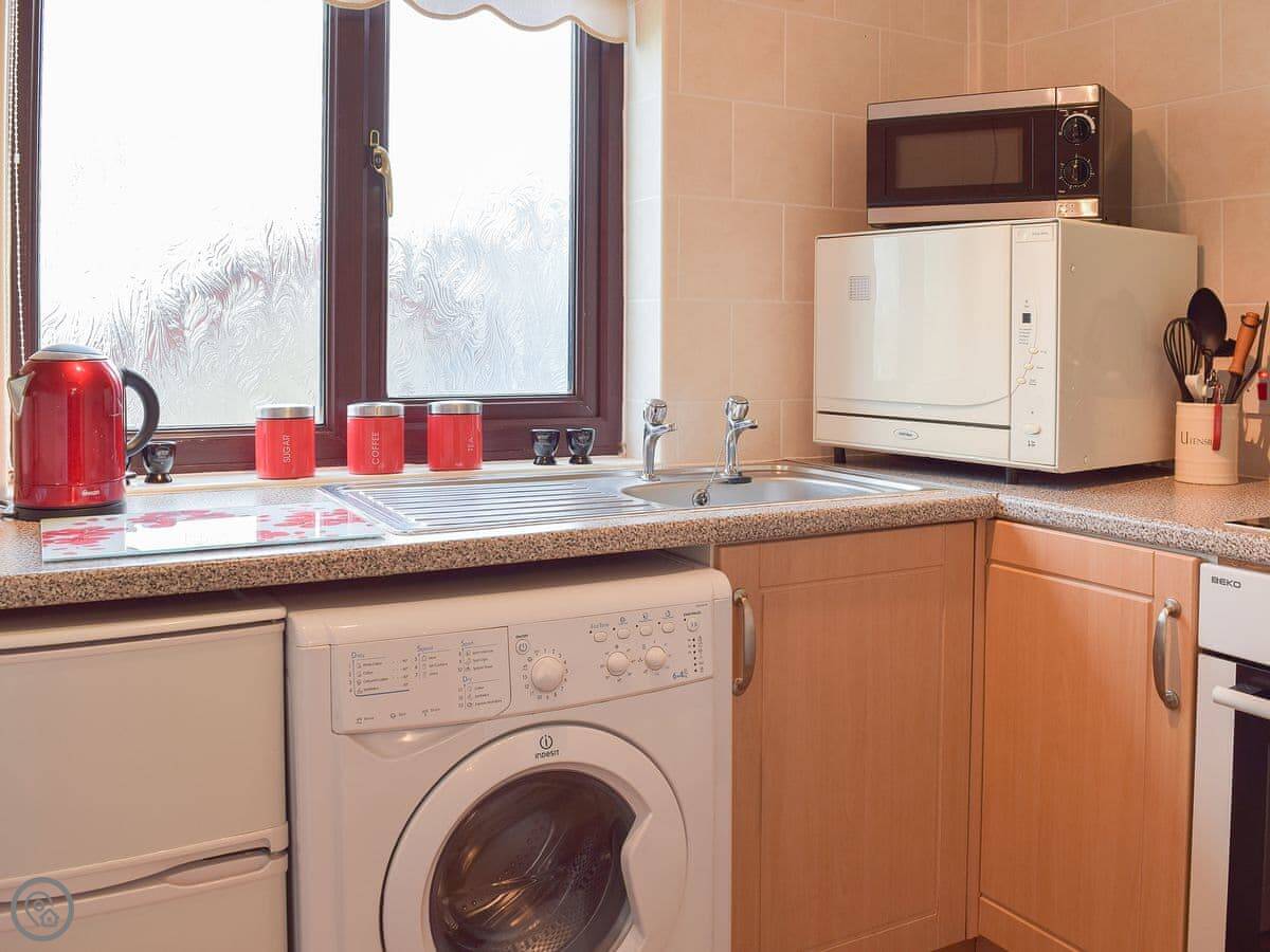 Inside, it’s been done up to a good standard. There’s a shower, a TV, and WiFi. The kitchen has a washing machine. Bedding and towels are included. We can provide a cot and a highchair if you need them.