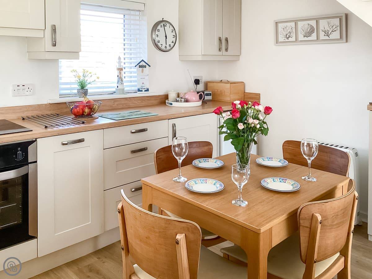 You're on a small estate, but it's quiet. The beach is a short walk away. It's a sandy beach, good for a proper walk. The shop and the pub are about ten minutes on foot.