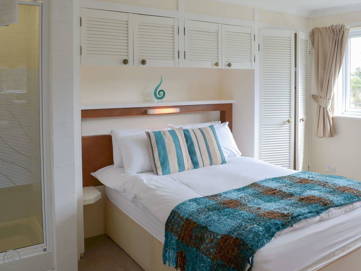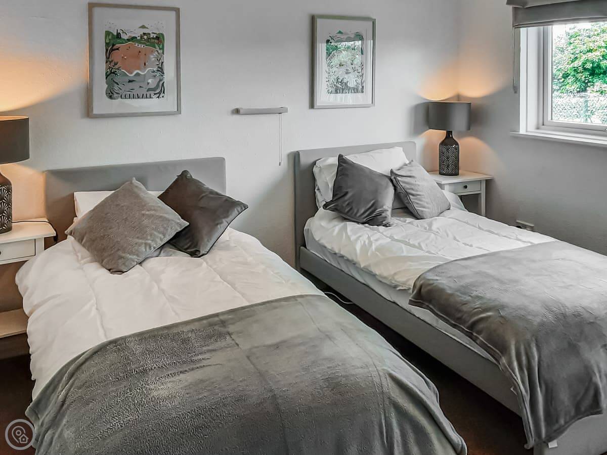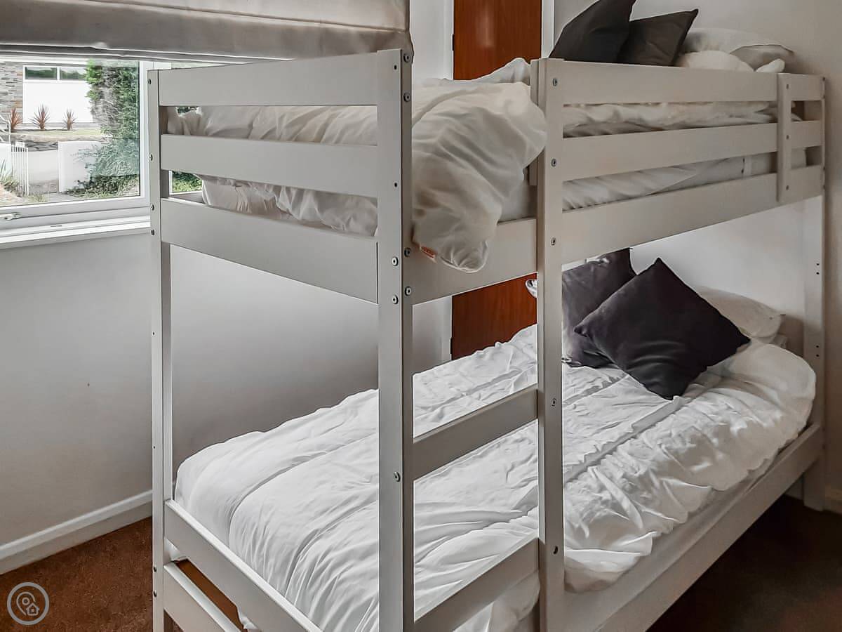 It's a bungalow, so everything is on one level which is handy. It sleeps eight in four bedrooms. Two have kingsize beds, one has twin beds, and one has a bunk bed. There are two bathrooms, one is an ensuite shower room off the main bedroom.