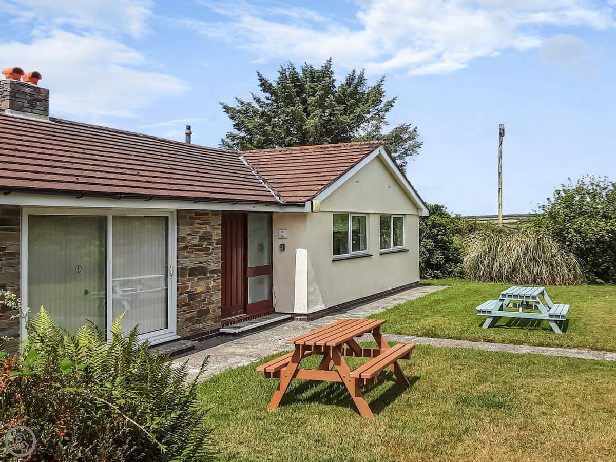 Valley Truckle Bungalow is in Camelford, Cornwall. It's on the edge of a caravan park site, but it's detached and has its own garden. The garden is private and has a picnic bench.