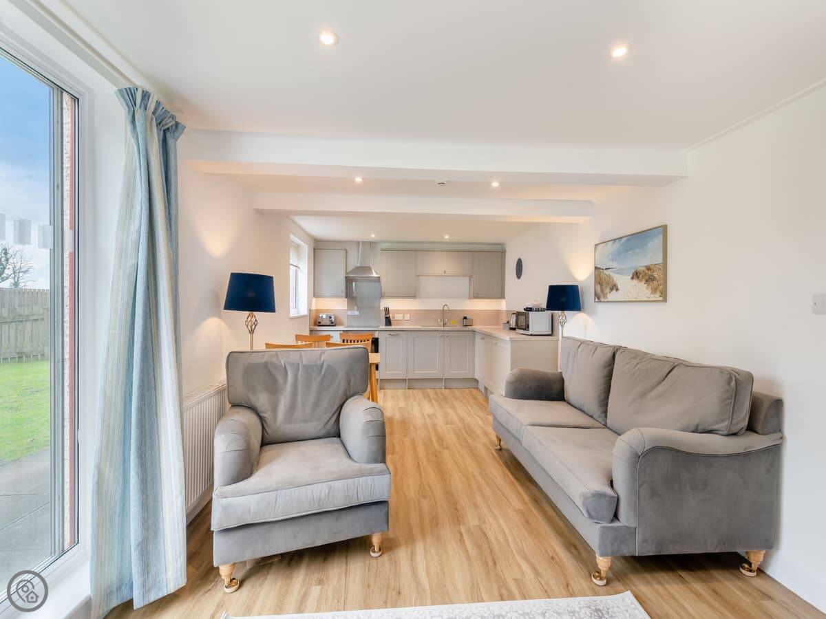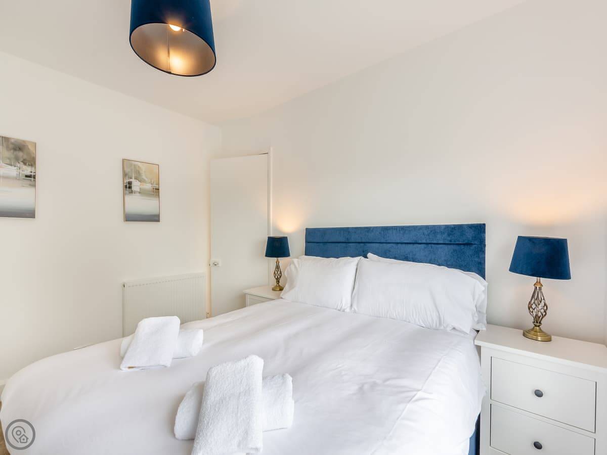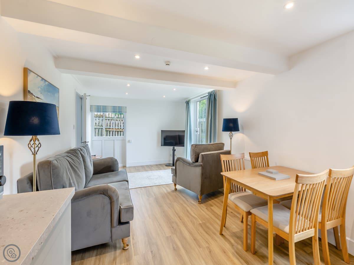 Outside, you’ve got your own patio area. There’s on-site parking. Inside, all the bedding and towels are provided. There’s a washing machine, a TV, and a cot and highchair if you need them.