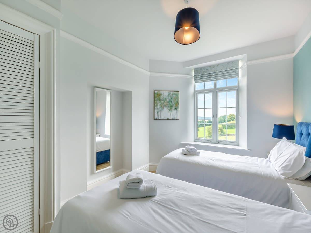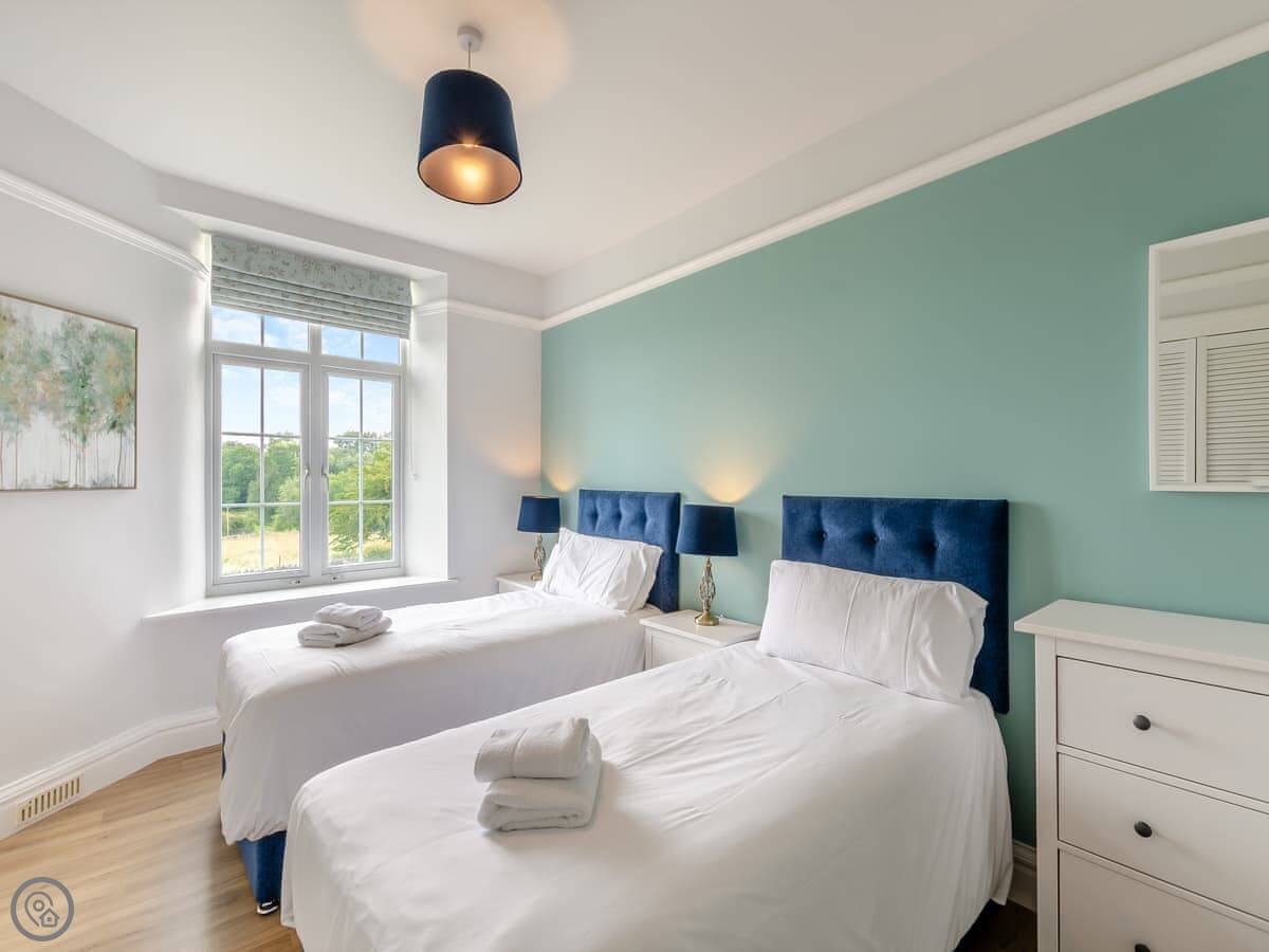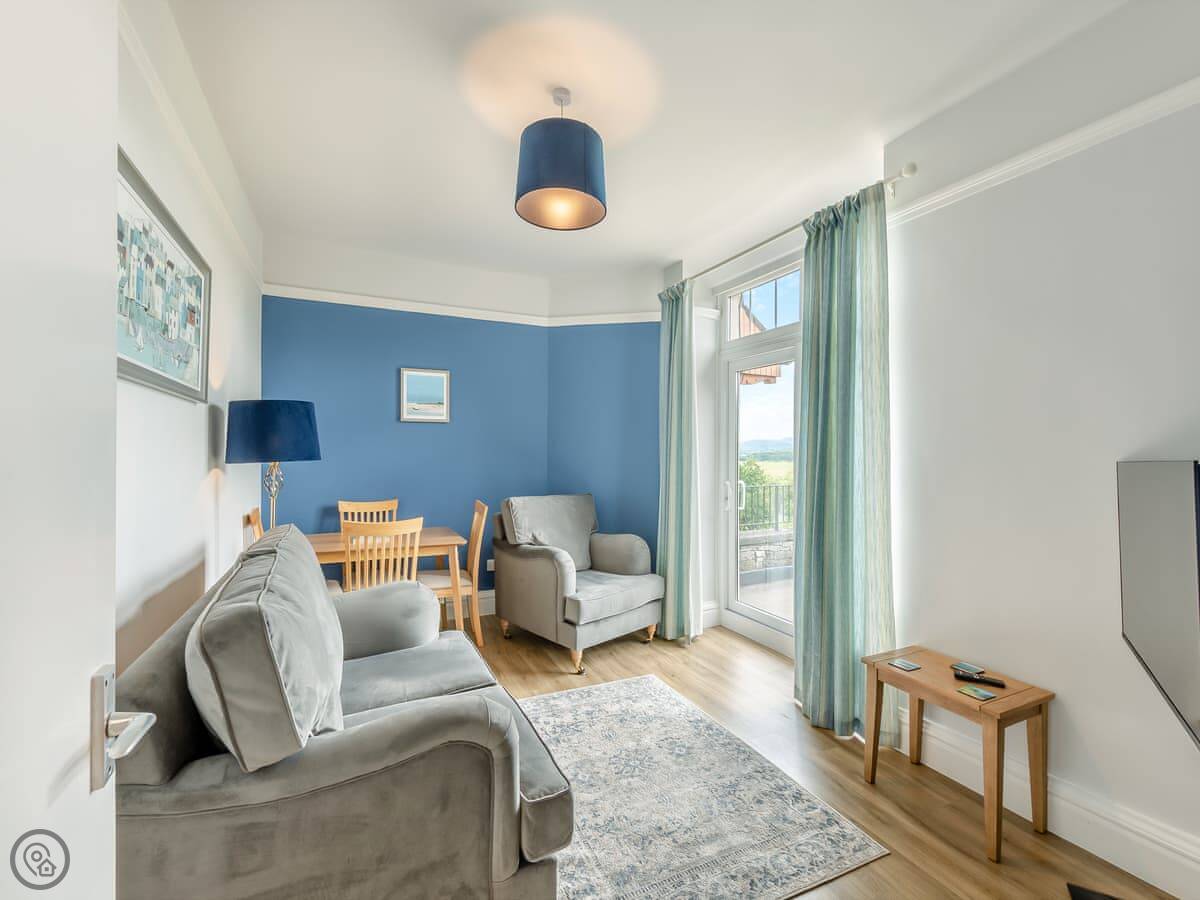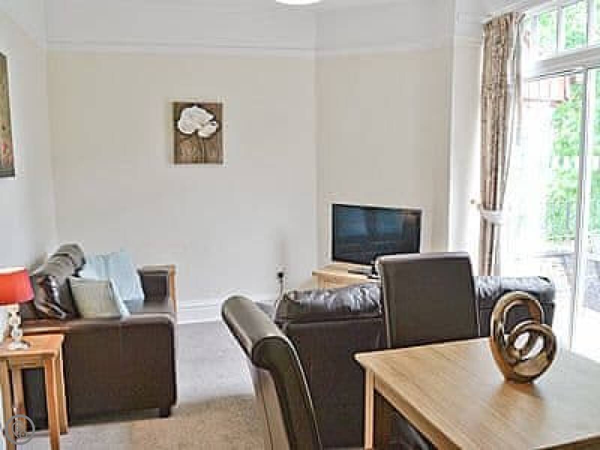 Baycliff Apartment is in Meathop. It's a ground floor apartment in a big, converted country house. The house is split into six holiday places. It's on a quiet, wooded spot with ten acres of grounds to walk around. The views south are good, you can see the sea on a clear day.