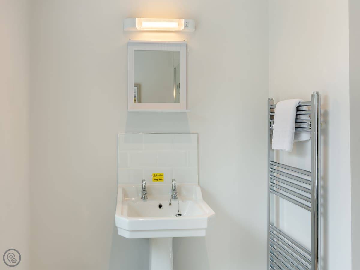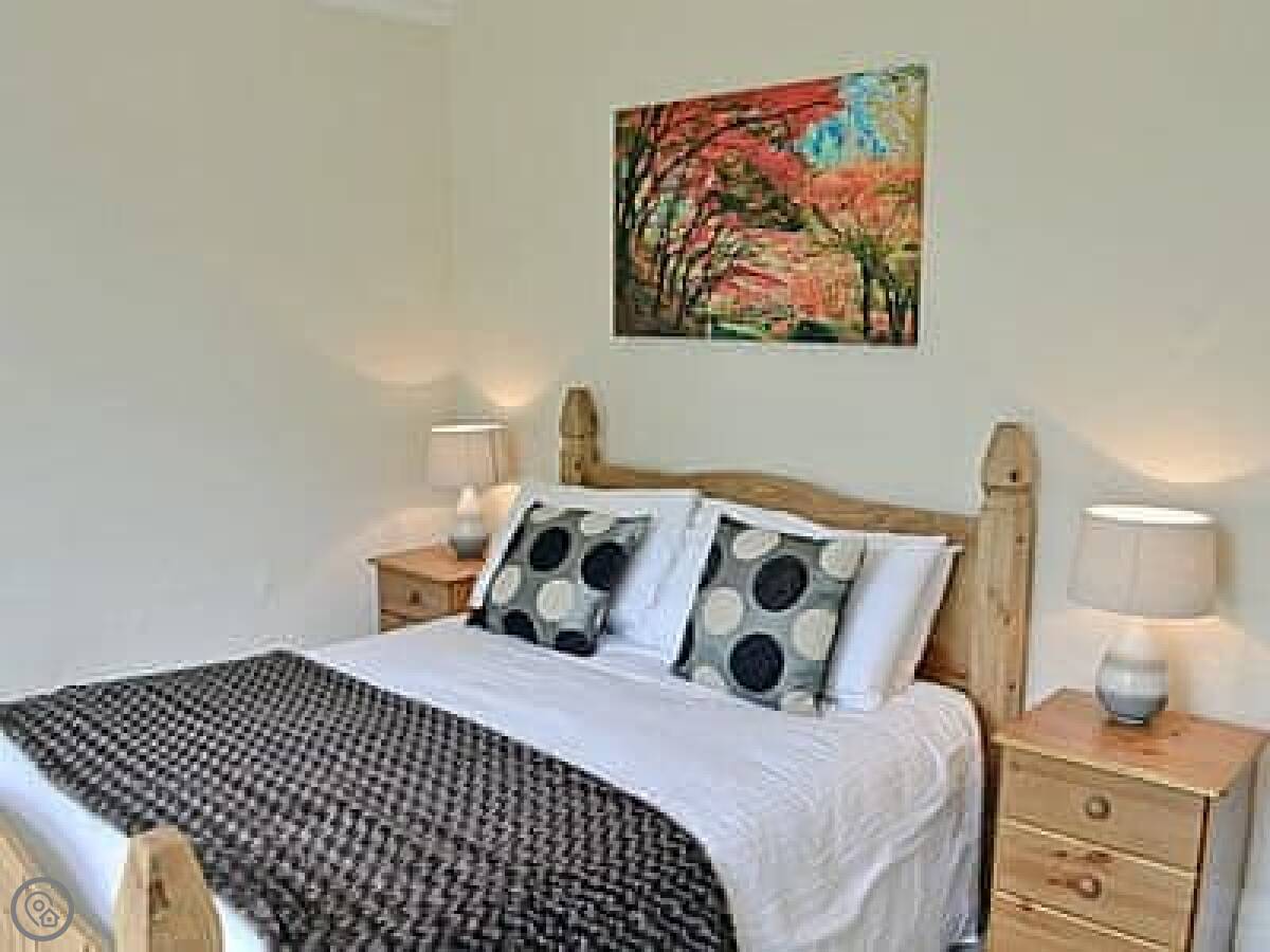 It sleeps four in two bedrooms. One bathroom with a shower. It's got a 4 Star rating, so it's comfortable and well looked after. It's part of a small, quiet caravan park owned by the Caravan Club, but the apartment building is separate. The grounds are nice to walk around, about ten acres.