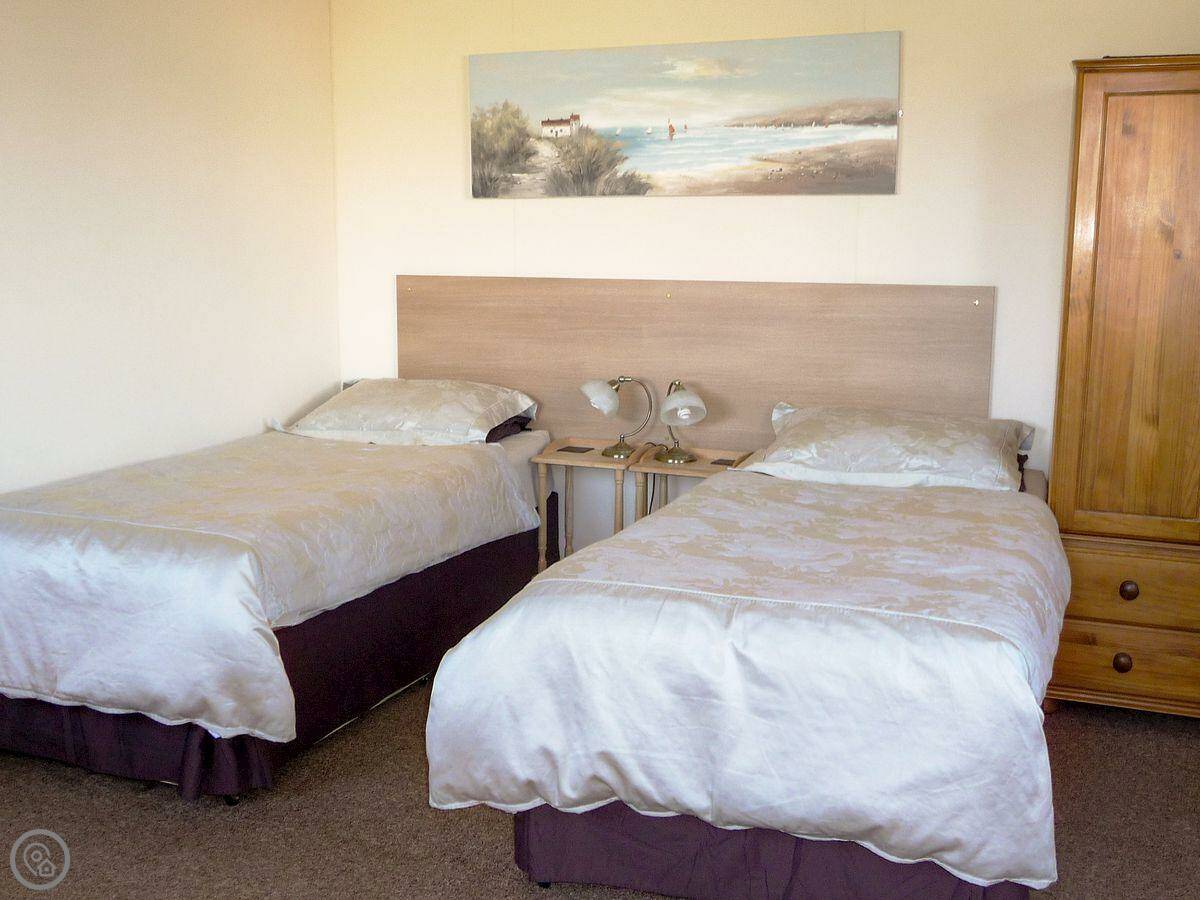 Scholten Lodge is on our land in Trezaise, Cornwall. It's a single storey lodge, so no stairs at all. It's detached, so you're on your own. The view is over fields and a couple of working farms.