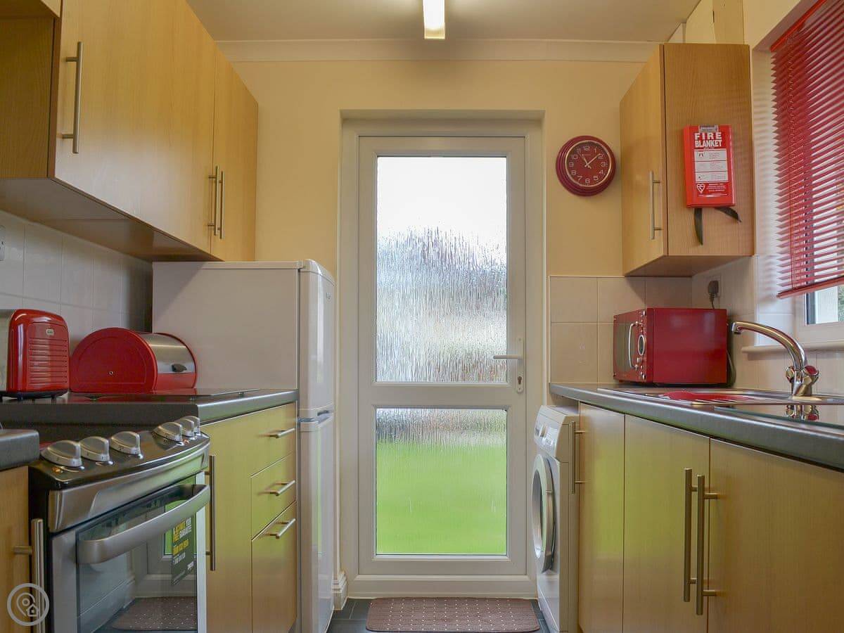 The bungalow has a patio and garden furniture. Inside, there's a proper kitchen with a washing machine, a TV, and WiFi. Bedding and towels are included. We can provide a cot and highchair if you need them. Parking is right outside.